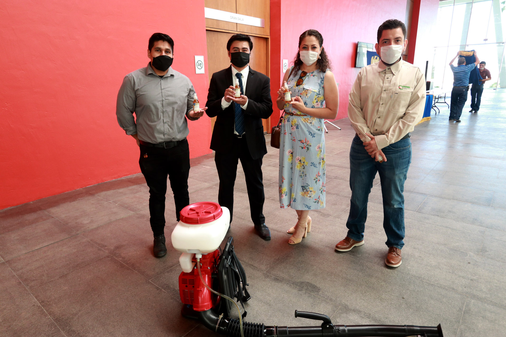 Por su parte, el director de Investigación y Posgrado, Cristóbal Noé Aguilar, indicó que se cuenta con una producción de más de 300 litros de producto, con el cual se comenzará a sanitizar los inmuebles de la Universidad y en breve iniciarán el proceso de registro de la Patente, para valorar cuál podría ser el costo al público, así como su distribución.