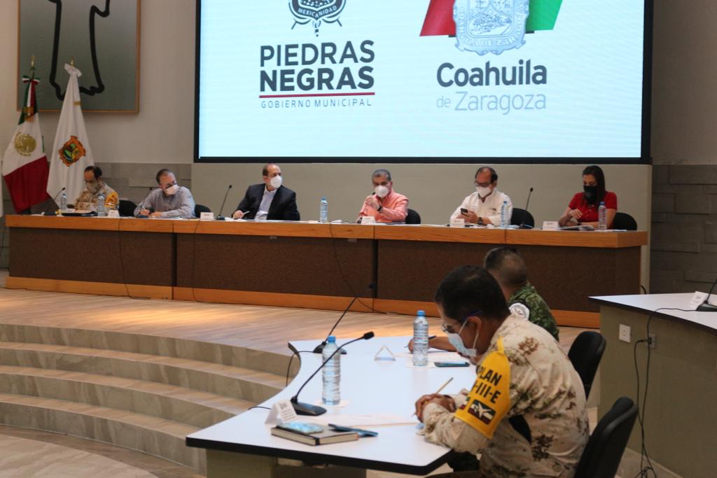 Así como el Comandante de la Guarnición Militar de la Plaza, General Sergio Ángel Sánchez García, y el Coordinador de la Guardia Nacional en Piedras Negras, Gustavo Campos Armendáriz.