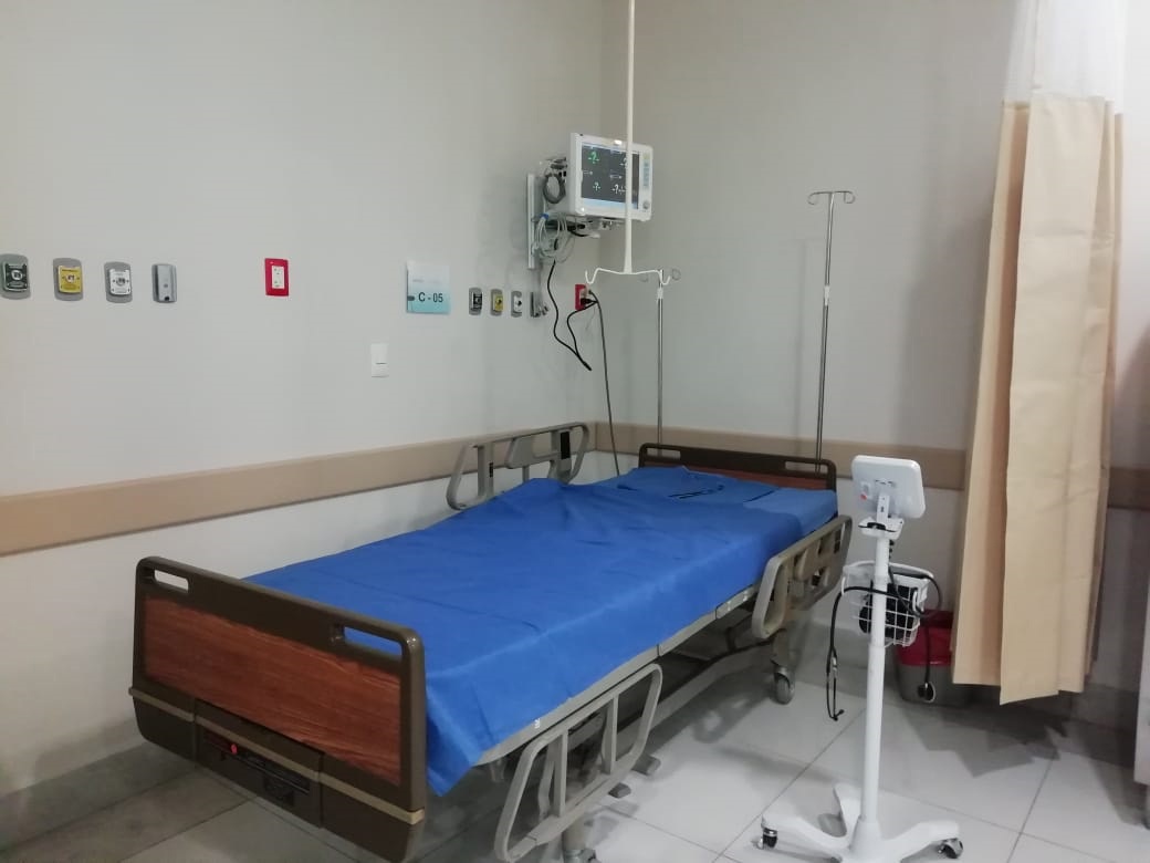 Asimismo, el área de hemodiálisis de la Torre Médica está habilitada como sala de Urgencias Respiratorias, la cual tiene capacidad para atender a cinco pacientes y un caso sospechoso o confirmado; si es un enfermo de gravedad, se cuenta con la Unidad de Terapia Intensiva, la cual tiene cuatro camas de hospitalización.