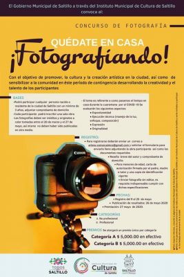 Como parte de la campaña “Saltillo Quédate en Casa” que el Gobierno Municipal impulsa durante la actual contingencia sanitaria, el Instituto Municipal de Cultura abrió la convocatoria para diversos concursos de expresión artística que se llevarán a cabo de manera virtual.