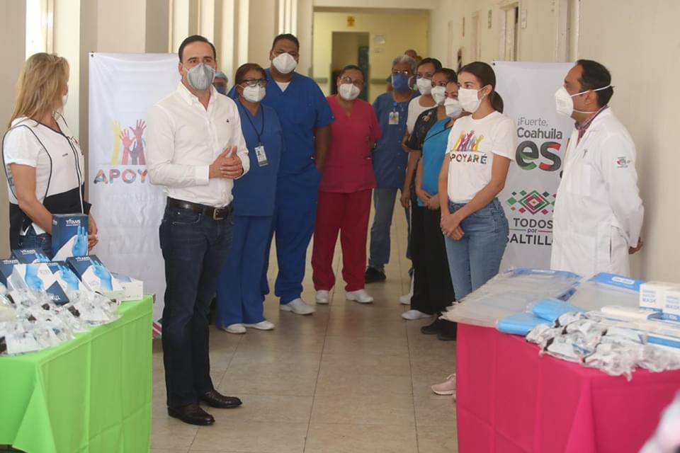 Paola Rodríguez López, fundadora de la iniciativa ciudadana Apoyaré, mencionó que, gracias al apoyo de la iniciativa privada y familias saltillenses, se ha hecho entrega de material como cajas de acrílico, googles médicos, guantes, trajes tyvek, caretas, batas, overoles quirúrgicos y cubrebocas N95 y de tres capas, para proteger al personal médico que se encuentra en la primera línea de acción durante la contingencia sanitaria.