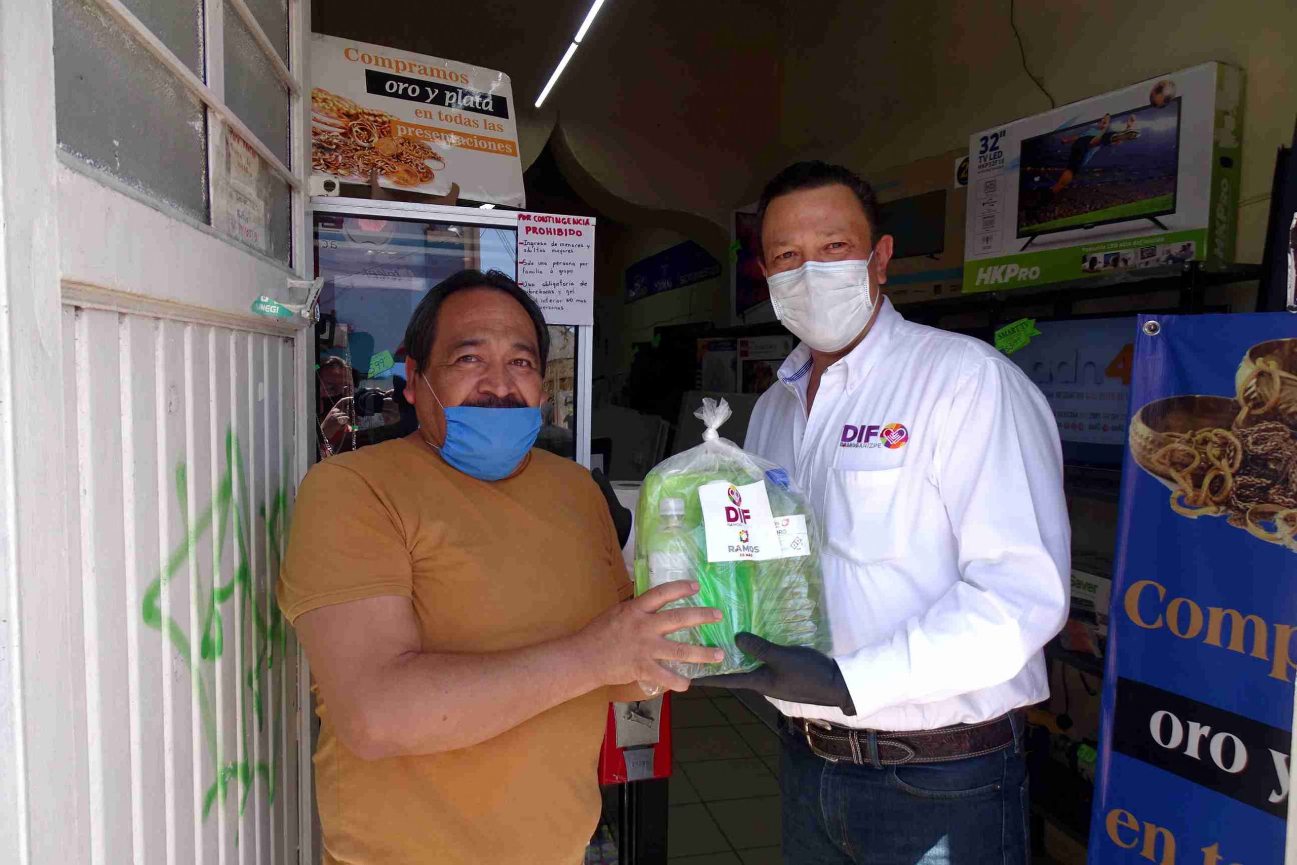“Nuestro objetivo es llegar a los 150 comercios que aproximadamente se han contabilizado aquí en el centro, esta acción de apoyar a los comerciantes se suma también a seguir entregando cubre bocas a la población con el apoyo de la policía municipal” señaló el director del DIF. (EDUARDO SERNA)