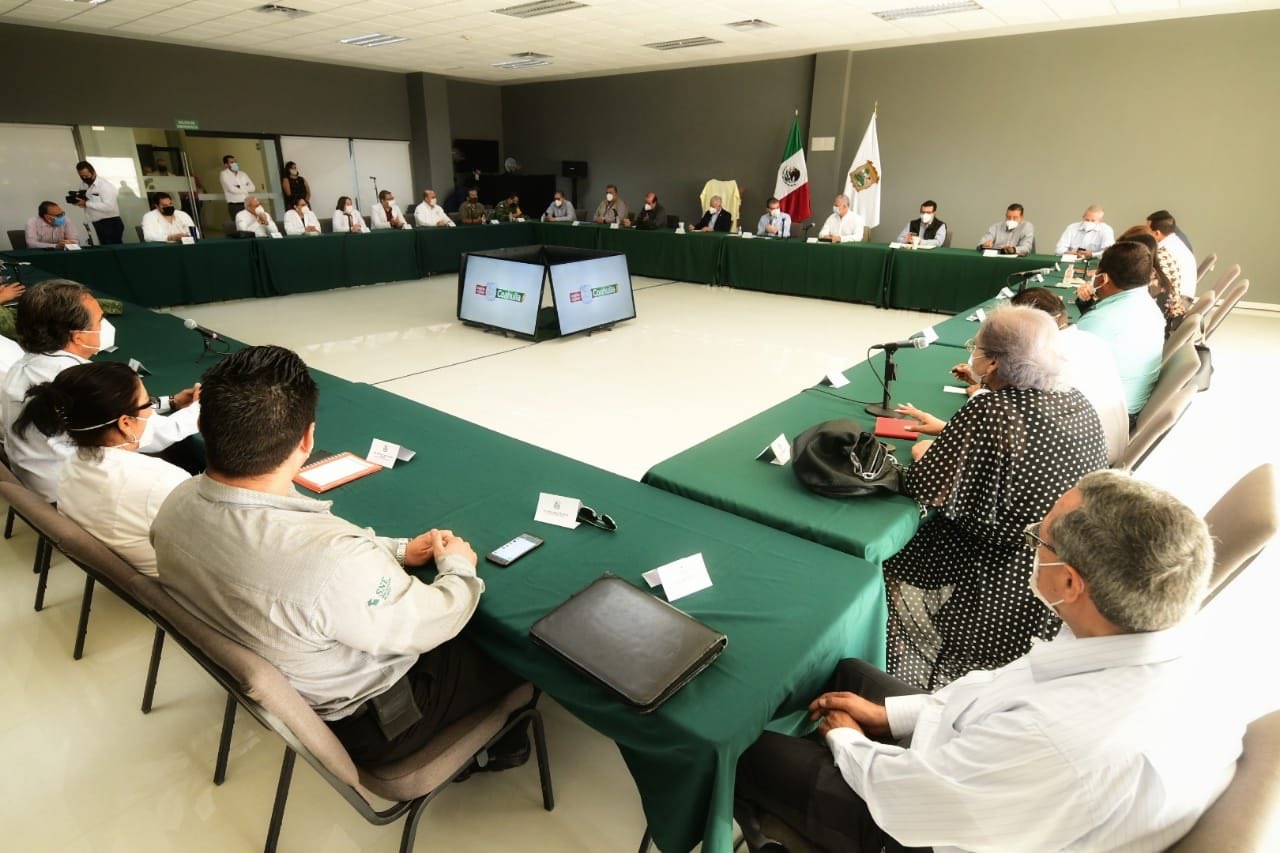 Torreón.- El gobernador Miguel Ángel Riquelme Solís encabezó la Reunión del Subcomité Técnico Regional Covid-19 en La Laguna para dejar claro que trabajará en la apertura paulatina del comercio, además de definir estrategias con empresarios laguneros de la reapertura económica.