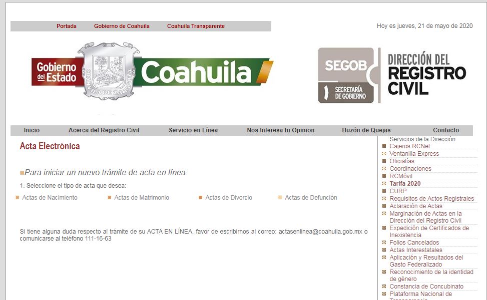 En caso de existir un error en su acta y se requiera iniciar un trámite de aclaración, se podrá mantener comunicación para señalar los requisitos, al correo aclaracionesrc@coahuila.gob.mx, y en caso de procedencia del trámite dar su debido seguimiento.