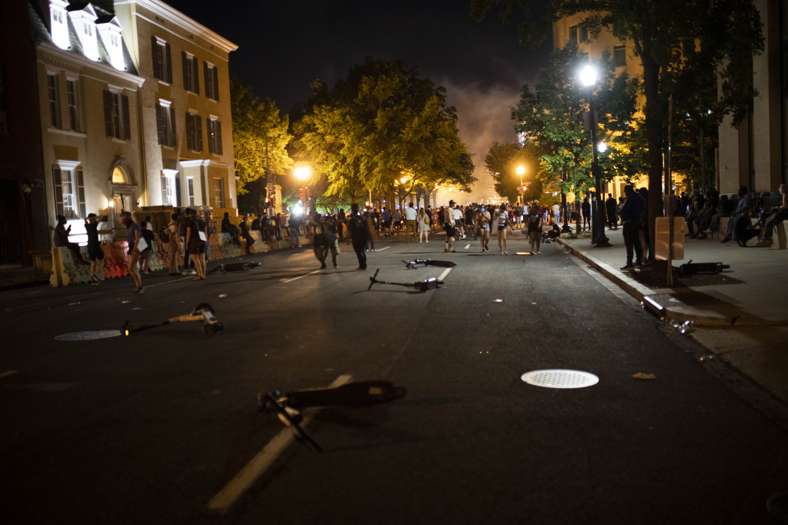 En Washington, D.C., los manifestantes prendieron fuego cerca de la Casa Blanca el domingo. El humo se mezcló con nubes ondulantes de gas lacrimógeno mientras la policía intentaba despejar de las multitudes del área cantando “George Floyd”.