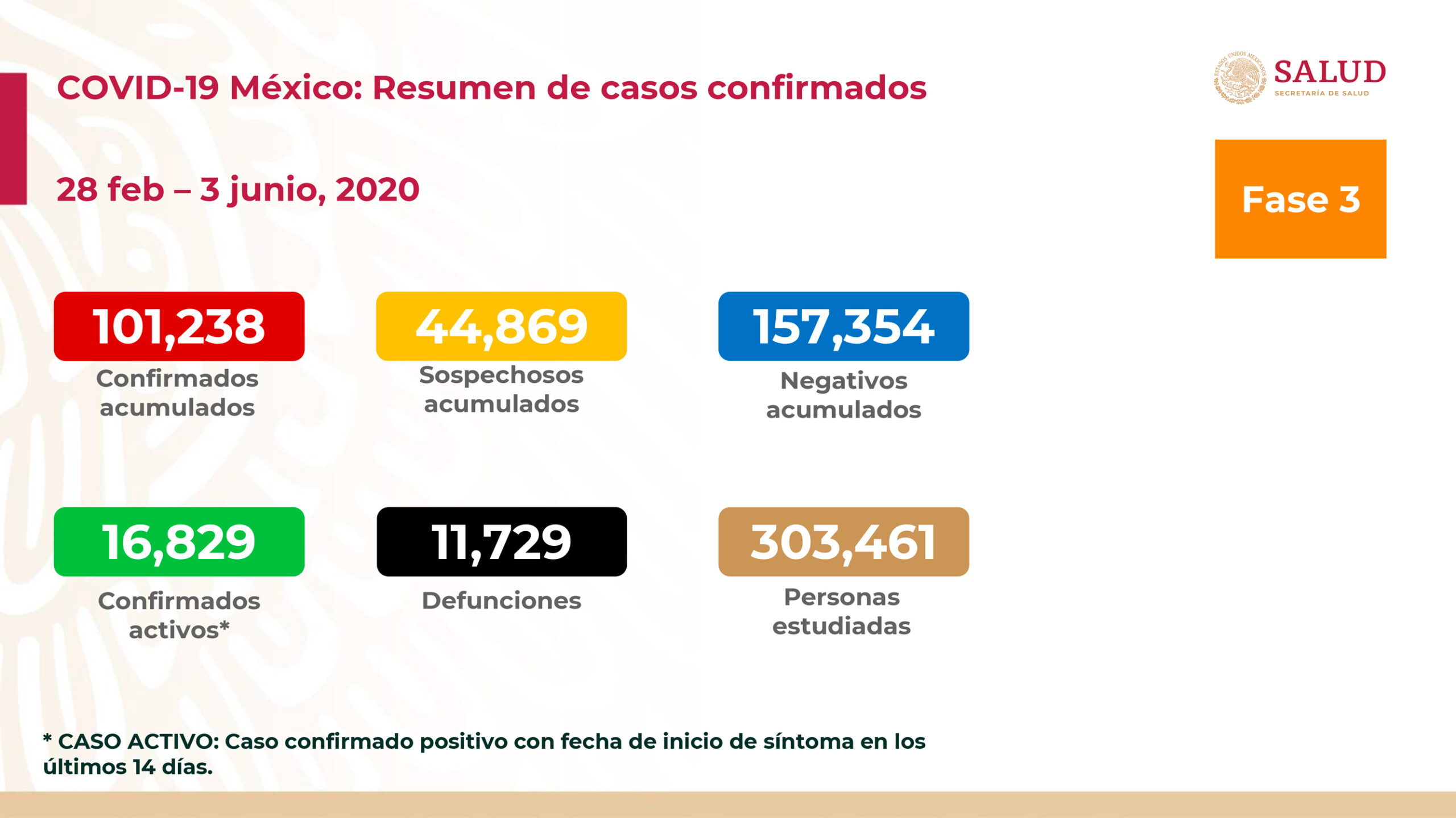 Dicha dependencia informó este miércoles que ya son 101 mil 238 las personas contagiadas por el nuevo coronavirus SARS-COV-2 en el país.