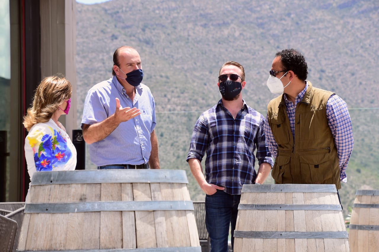 En el marco de las reuniones con la cadena de valor del turismo para la revisión de protocolos de reactivación del sector, Azucena Ramos Ramos, Secretaria de Turismo de Coahuila, visitó viñedos de la Región Sureste.