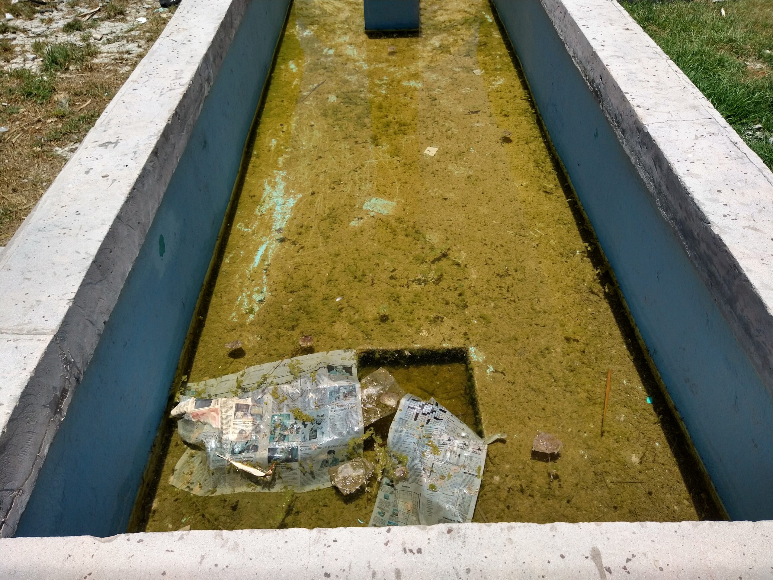 Mediante un recorrido, se pudo constatar el estado lamentable en que se encuentra esa emblemática fuente, donde la poca agua que permanece acumulada desde hace varios meses, se encuentra lamosa, además de flotar en ella gran cantidad de basura.