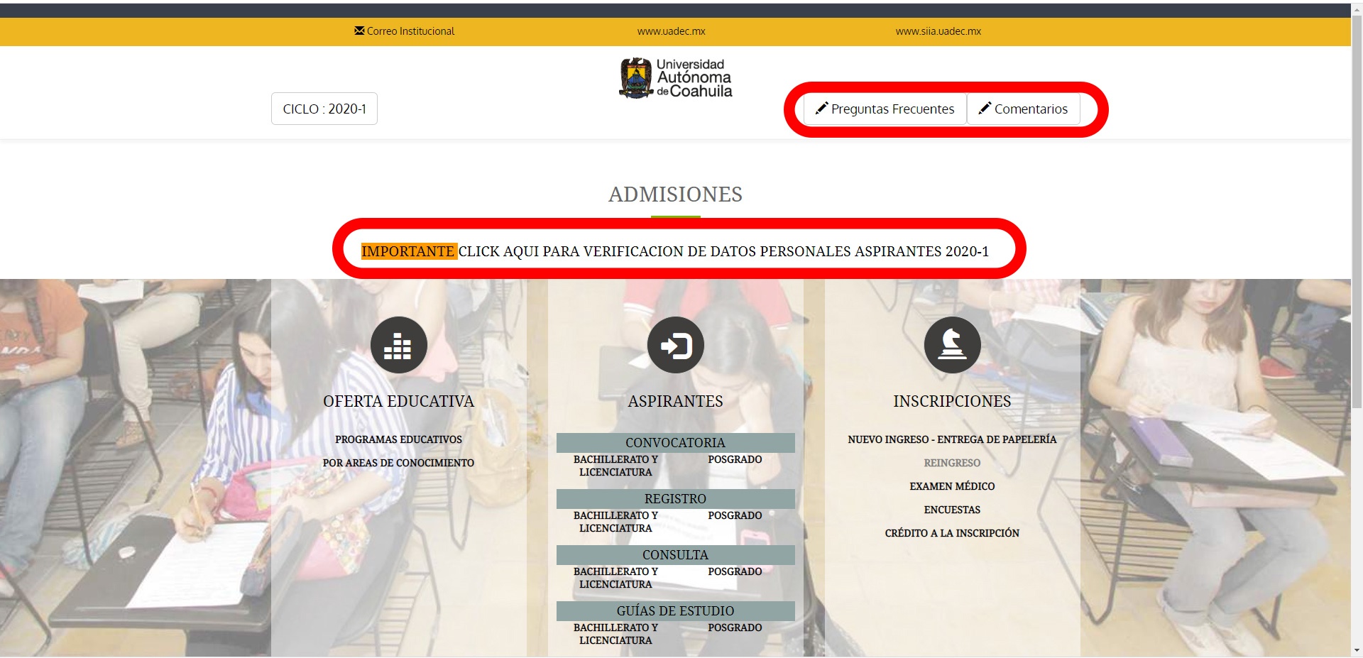 Se invita a los aspirantes a visitar la página de Admisiones www.admisiones.uadec.mx, si tienen alguna duda respecto a la aplicación del Examen de Admisión, además se les reitera que la actualización de datos personales es obligatoria y sin excepciones con fecha límite al 10 de junio de 2020. (EL HERALDO)