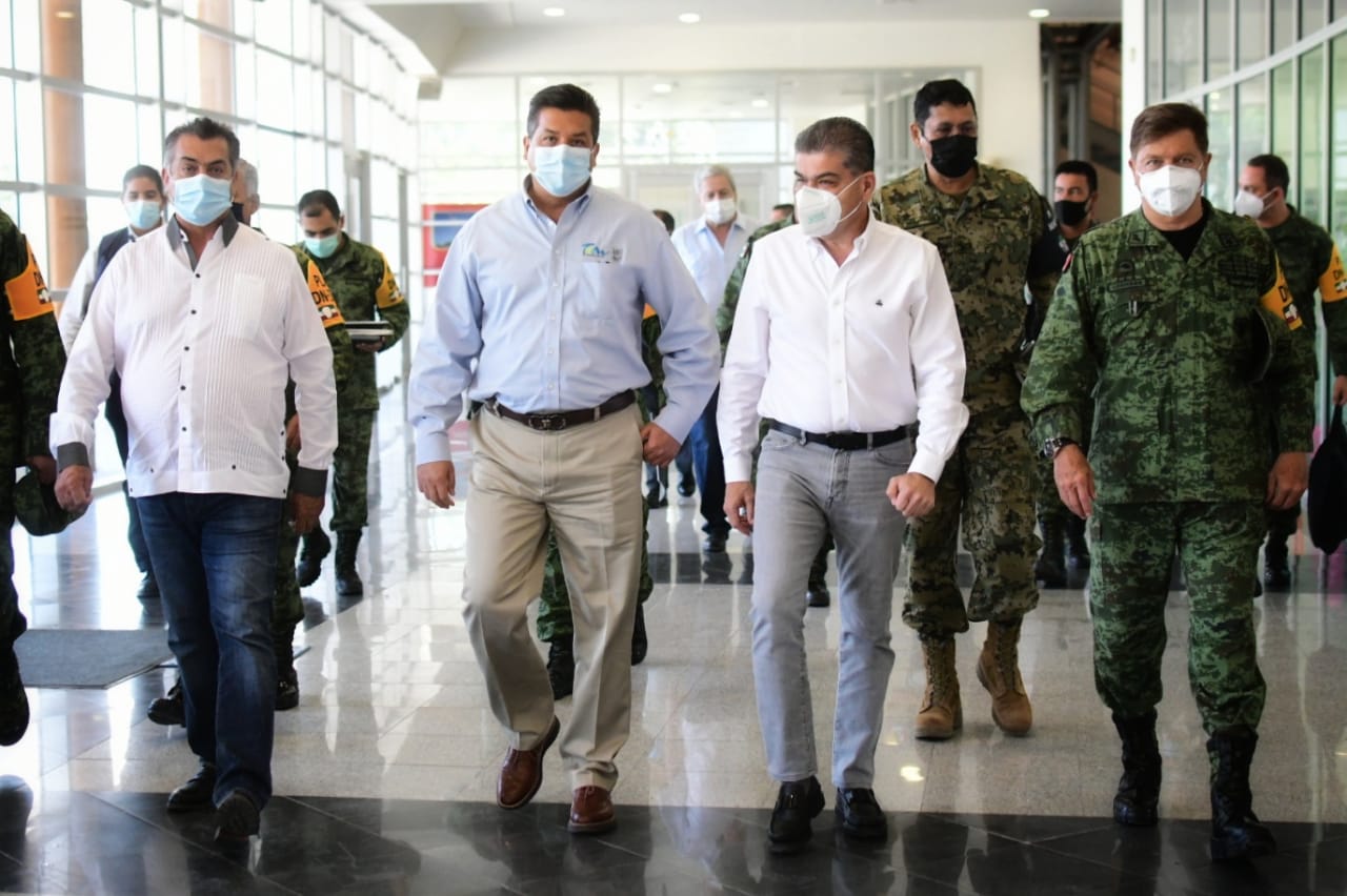 Durante la Reunión de Coordinación Regional en Materia de Seguridad, los gobernadores Francisco Javier García Cabeza de Vaca, de Tamaulipas, y Jaime Rodríguez Calderón, de Nuevo León, coincidieron con Riquelme Solís y reiteraron su agradecimiento al Ejército Mexicano y la Guardia Nacional por acompañarlos en esta tarea de mantener el orden en los tres estados del noreste.