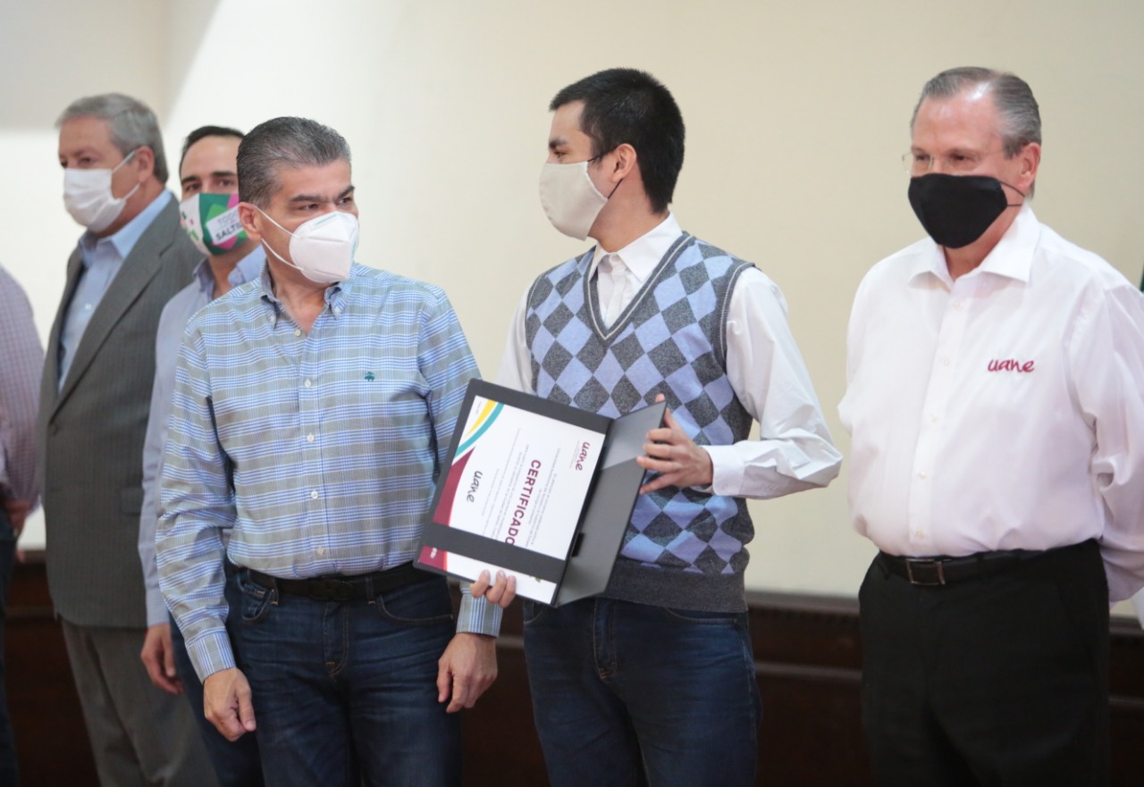 Miguel Riquelme agradeció a la Universidad Autónoma del Noreste y a su Rector, Jorge Verástegui Saucedo, por coordinarse con el Gobierno de Coahuila y emprender un proyecto de beneficio para las y los coahuilenses, pero sobre todo para hijas, hijos y cónyuges de quienes salvaguardan la integridad de los ciudadanos en la entidad: las y los policías estatales.