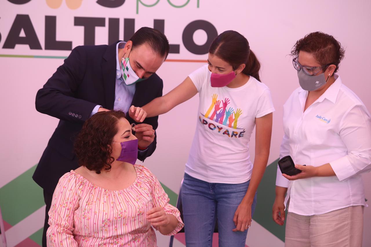 El alcalde de Saltillo, Manolo Jiménez Salinas, acompañado por su esposa Paola Rodríguez López, fundadora de la iniciativa ciudadana Apoyaré, reactivo la entrega de aparatos auditivos del programa “Escuchemos Todos por Saltillo”, mismo que beneficiará en esta etapa a mil 500 saltillenses.