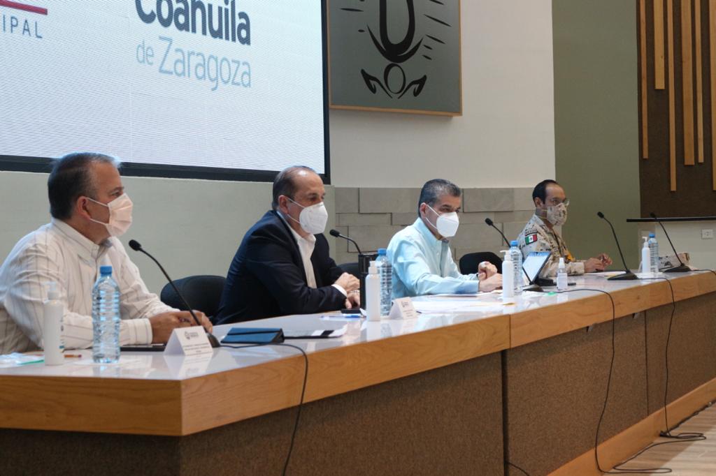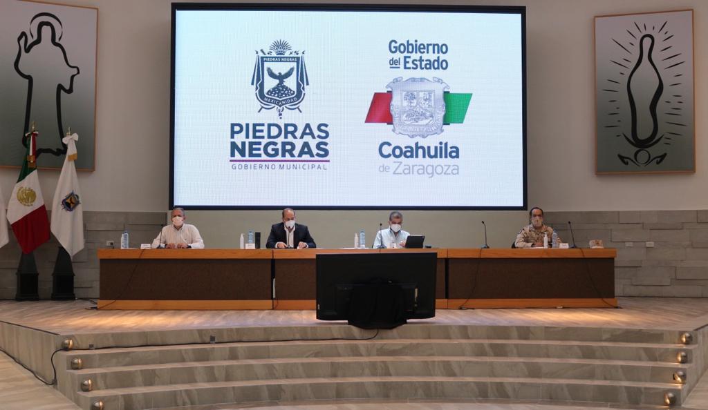 Piedras Negras, Coahuila.- El gobernador Miguel Ángel Riquelme Solís encabezó este jueves la Reunión del Subcomité Covid-19 de la Región Norte, donde destacó que los indicadores en las regiones de la entidad son fundamentales para la reactivación profesional de la economía, en apego a los protocolos sanitarios vigentes.
