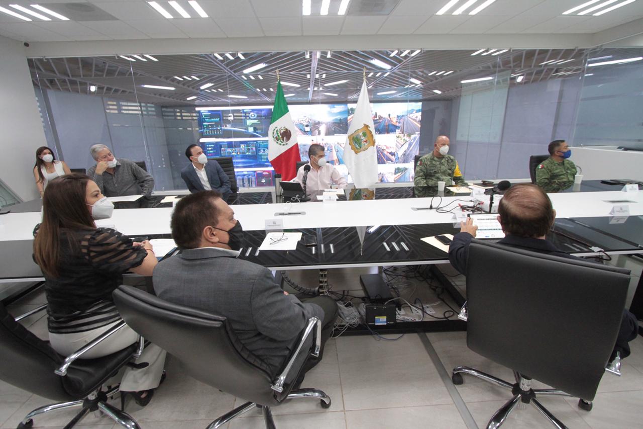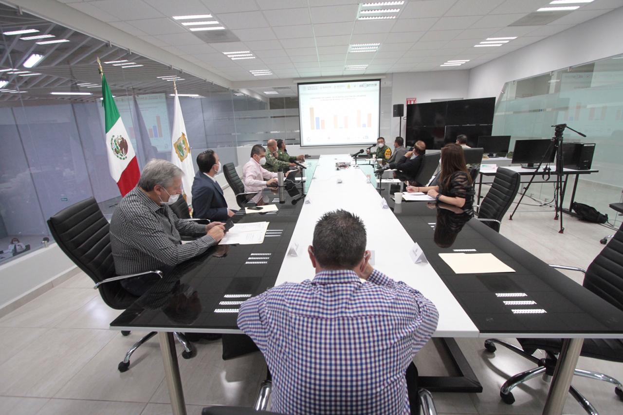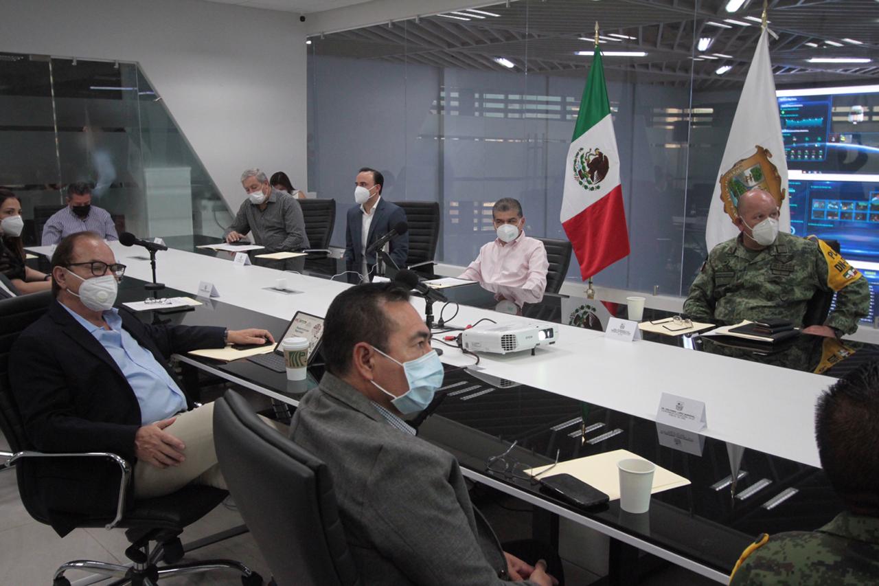 Gobernador Miguel Riquelme y el comandante de la Sexta Zona Militar, Enrique Covarrubias, encabezaron la reunión de evaluación en Centro Estatal de Contingencia