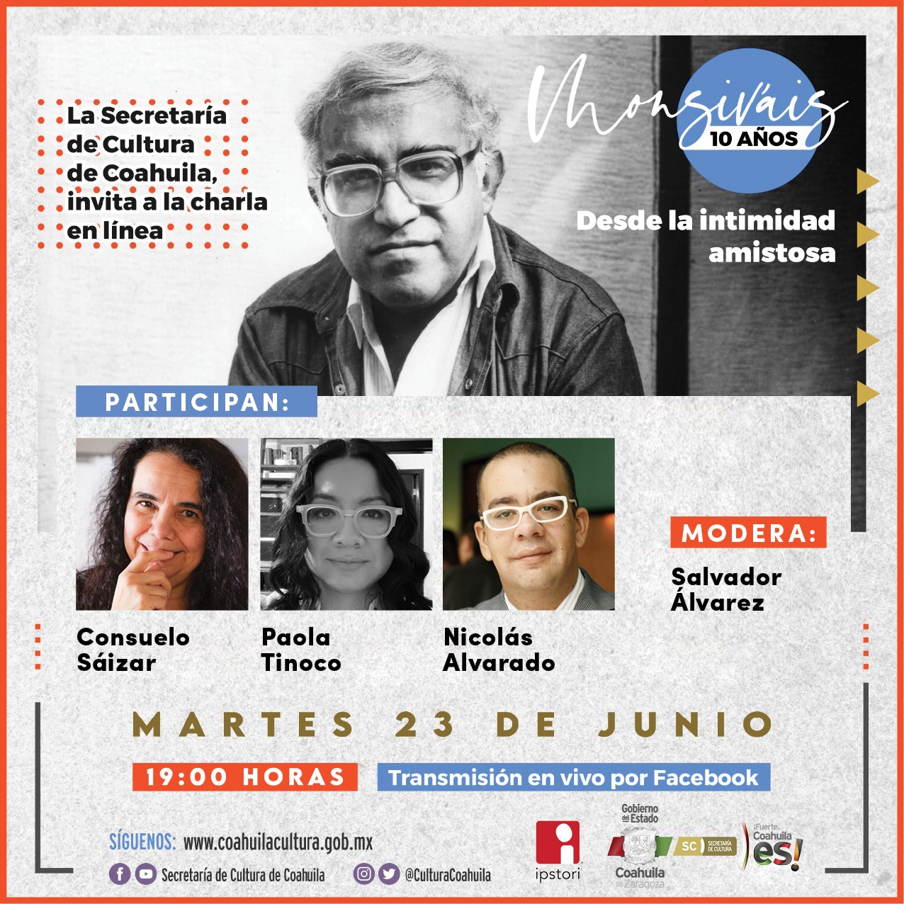 “‘Monsiváis 10 años, desde la intimidad amistosa’, es el nombre de esta charla”, dijo.