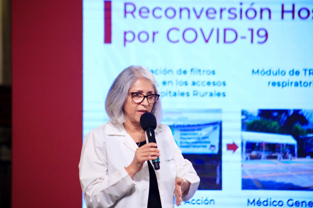 Para este propósito, Lara Saldaña explicó que se instrumentaron diversas estrategias de atención médica que incluyeron la instalación de filtros sanitarios en los accesos de los 80 Hospitales Rurales (HR); los Triage Respiratorios para identificar personas con datos de infección respiratoria y la reconversión hospitalaria, con el propósito de brindar atención médica especializada a los pacientes con infección por COVID.