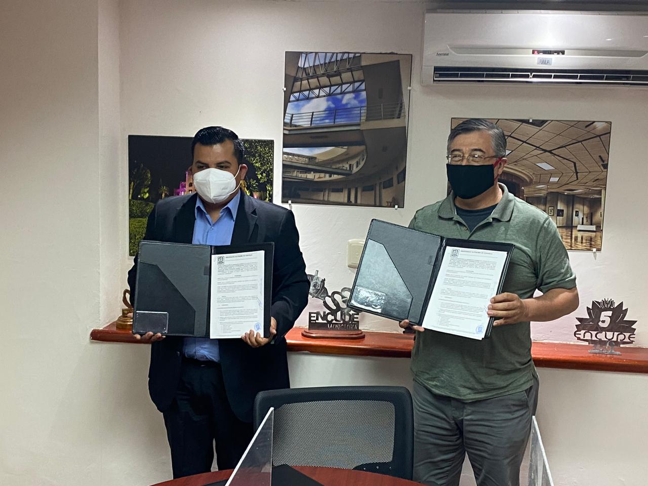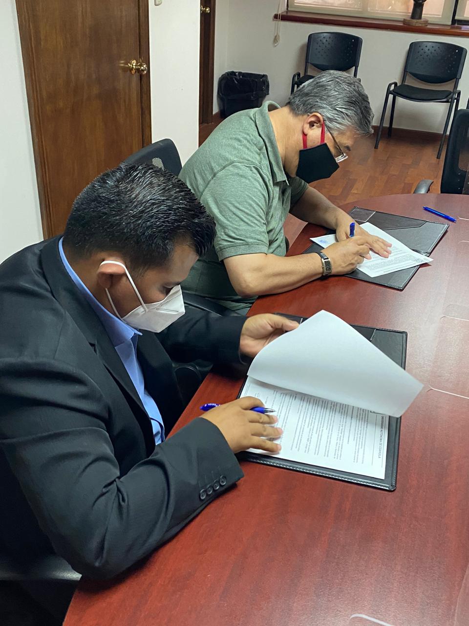 El evento se llevó a cabo bajo las medidas sanitarias correspondientes y se contó con la presencia del coordinador de Difusión y Patrimonio Cultural, Eliezer Jáuregui Arrazáte y el coordinador de Educación a Distancia, Félix Ibarra Linares, quienes signaron el documento.