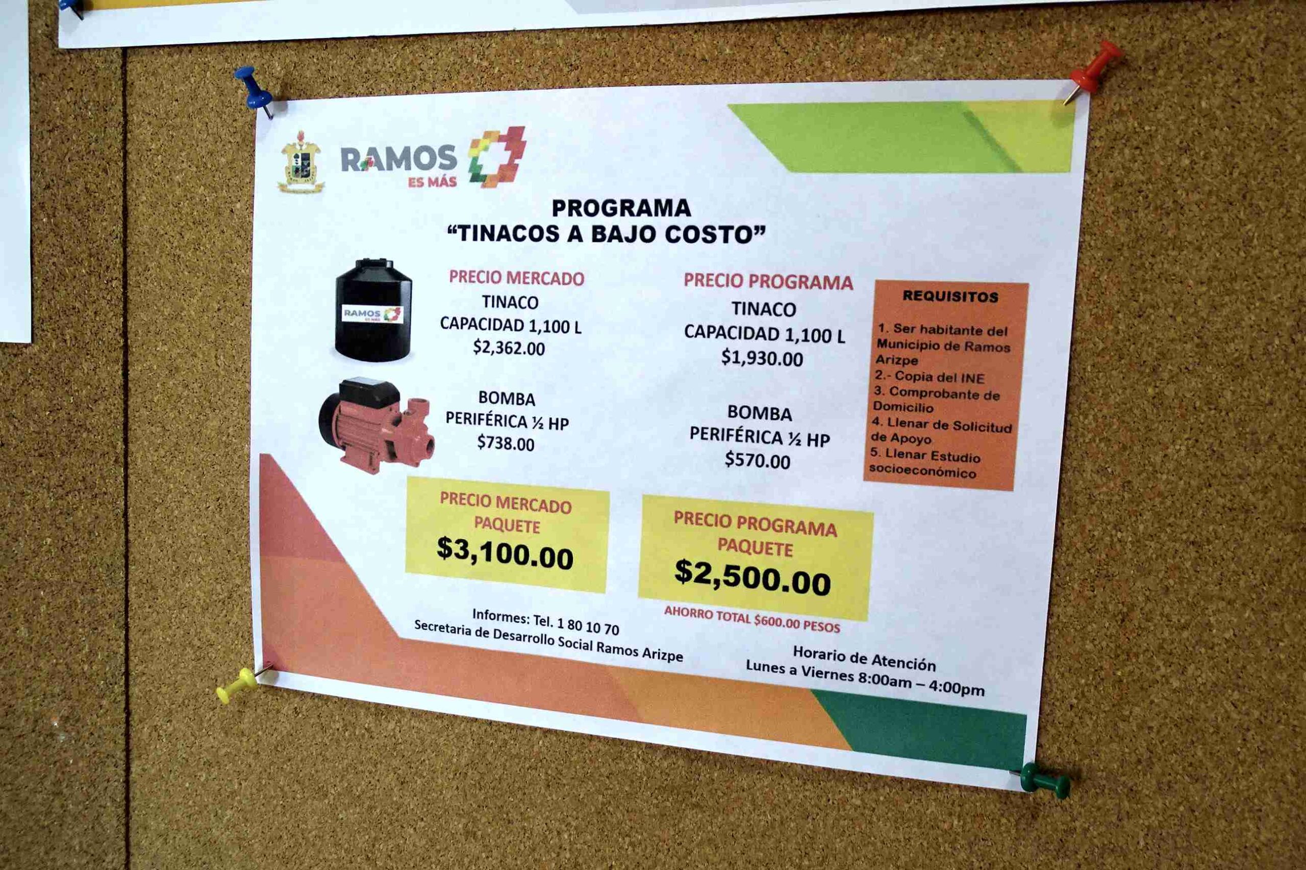 La dirección de desarrollo social en Ramos Arizpe continúa invitando a la población a acercarse y adquirir su tinaco a bajo costo que ofrece esta dirección municipal. En lo que va del año, se han entregado 40 tinacos por mes, beneficiando a casi 300 personas.