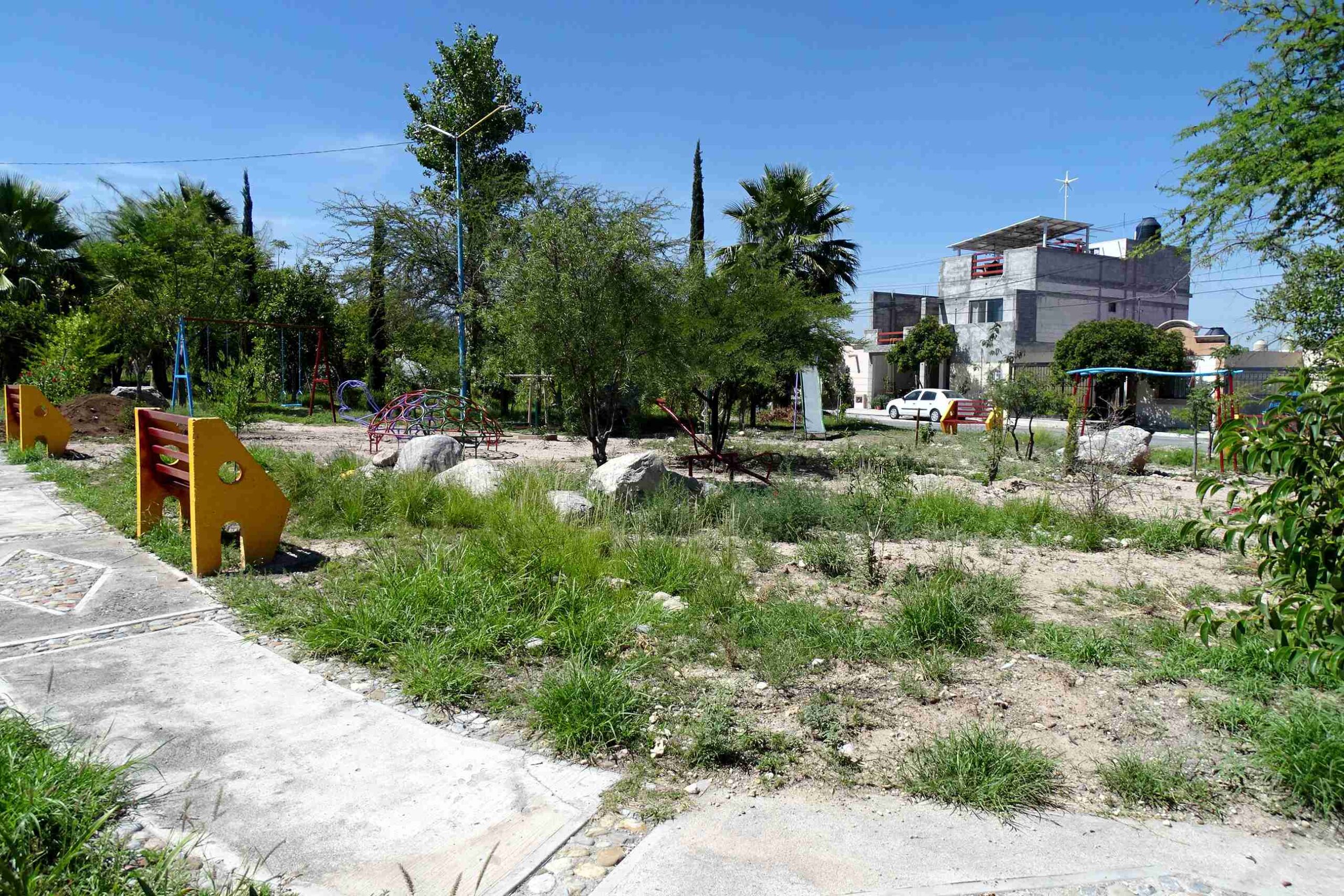 La situación se presenta sobre la calle Hacienda de Laureles, vialidad que rodea totalmente a toda la plaza pública. Mario, uno de los vecinos preocupados por el aspecto de este espacio manifestó que a la llegada de nuevos vecinos a esta calle se ha generado un mayor maltrato en la plaza pública.