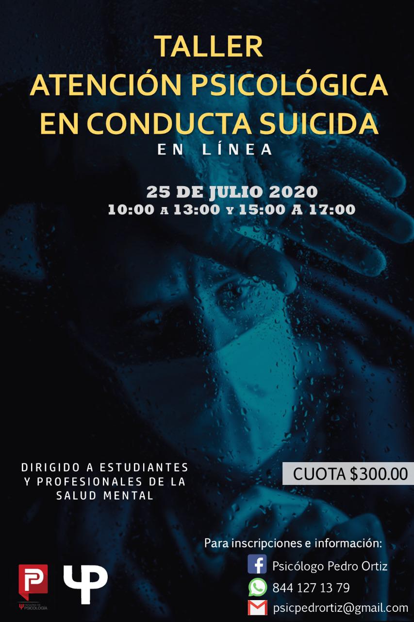 Al reconocer que derivado de la pandemia por Covid-19, el campo terapéutico de la psicología se enfrenta al reto de cómo apoyar a personas con algún padecimiento emocional desde la sana distancia que demanda la prevención de contagios de esta enfermedad, el psicólogo y ponente Pedro Ortiz, ofrecerá este próximo 25 de julio de 10:00 de la mañana a 1:00 de la tarde y de 3:00 a 5:00 de la tarde, el taller «Atención Psicológica en Conducta Suicida en Línea», en el que explicará cómo a través de videoconferencias y el apoyo de redes sociales, se pueden evitar suicidios.
