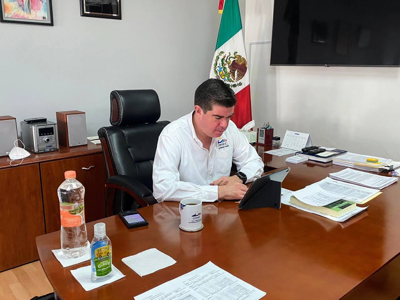 Sin embargo, destacó que es asintomático, no obstante, sigue los protocolos médicos confinamiento en su domicilio y señaló que no se ha mantenido contacto directo con personal de las visitadurías que trabajan en forma independiente del edificio de la presidencia.