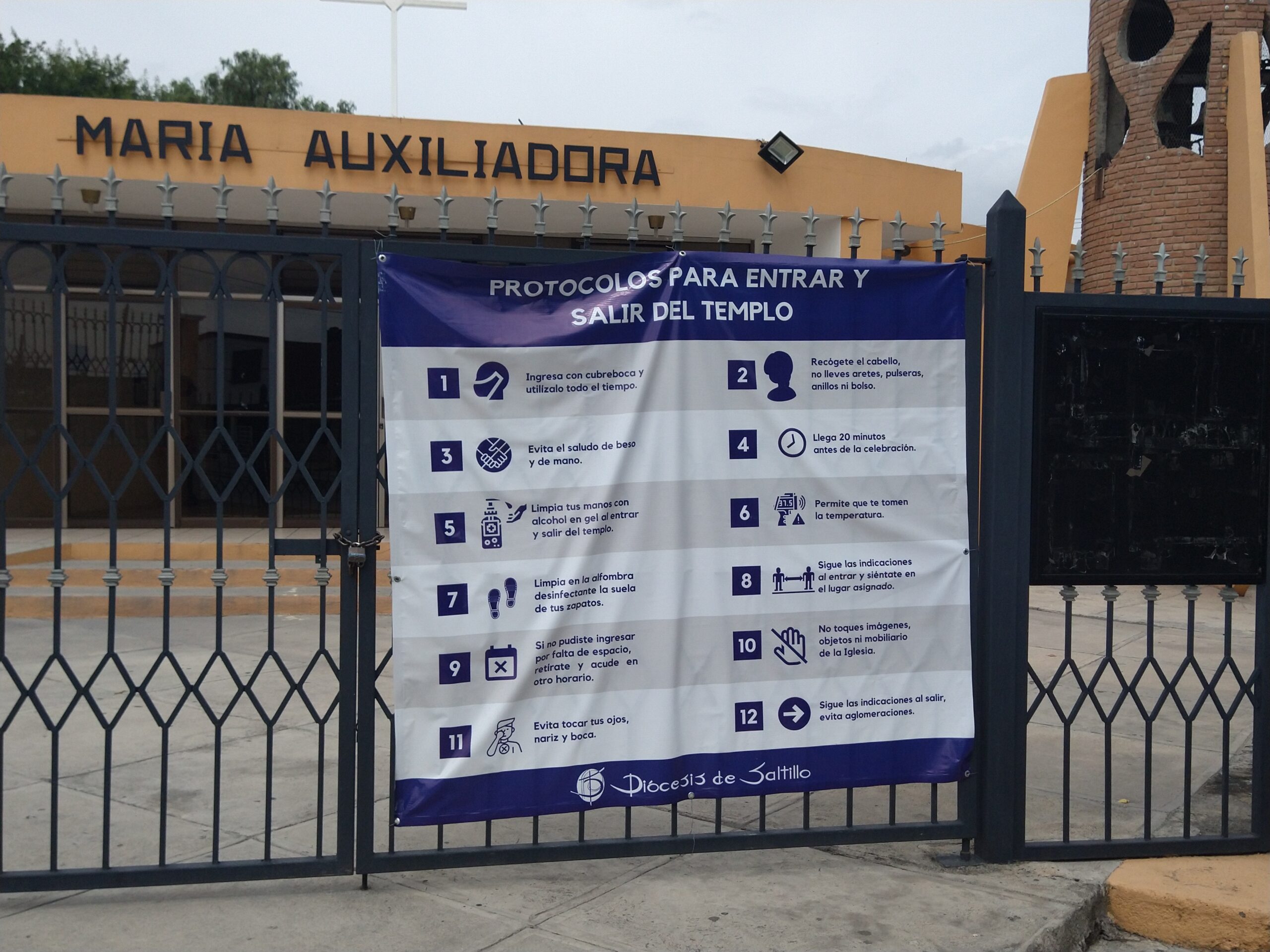 La Diócesis de Saltillo dispuso la colocación en diversos templos de esta capital de lonas impresas en las cuales se dan a conocer los protocolos que deberán asumir los fieles asistentes a los mismos para poder ingresar, lo que podría ser indicativo de que en algunos días o semanas podría llevarse a cabo la reapertura de estos recintos.