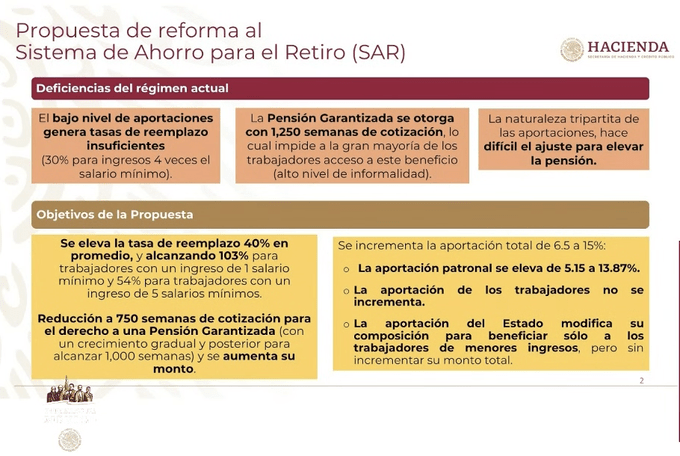 Ciudad de México.- El Gobierno de México presentó este miércoles una propuesta de reforma al Sistema de Ahorro para el Retiro (SAR).