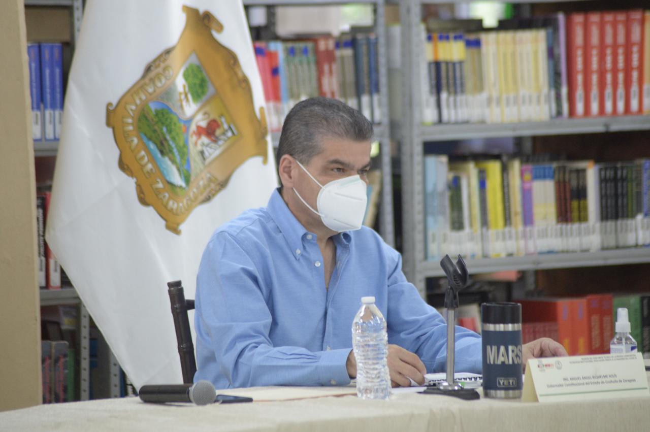 Sabinas, Coah.- Con hechos se atenderán las problemáticas sociales durante la pandemia, anunció el Gobernador del Estado, Miguel Ángel Riquelme Solís, al presidir la XVII Reunión del Subcomité Técnico de la Región Carbonífera de Covid-19, donde refrendó su compromiso de seguir trabajando en conjunto con alcaldes para garantizar atención en servicios básicos, seguridad y paz social.