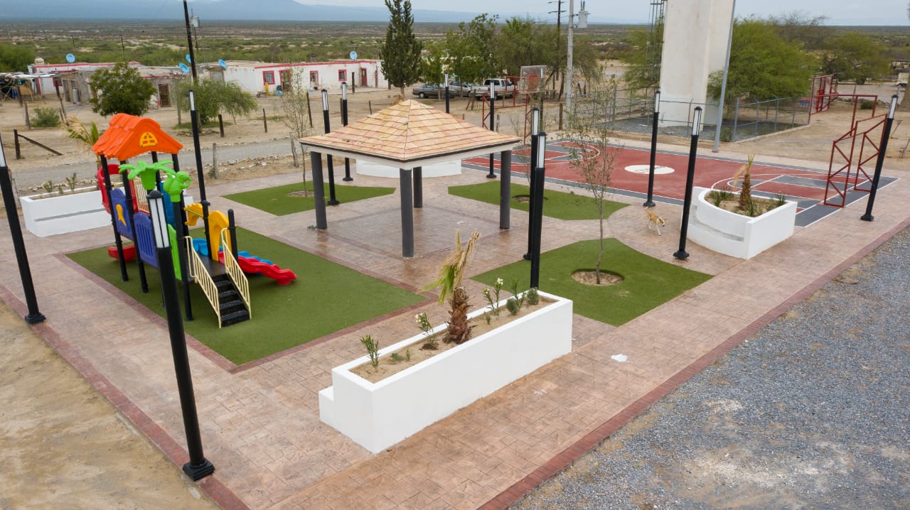 Los ejidos donde se ubicarán los 10 complejos son: La Tortuga, Hipólito, La Sauceda, Plan de Guadalupe, Reata, Higueras, Acatita, La Leona, Fraustro y Guajardo con una inversión superior a los 15 millones de pesos. Los complejos recreativos y deportivos constan de una plaza pública, quiosco, pasto sintético, jardineras, luminarias, concreto estampado, juegos infantiles y una cancha de usos múltiples con dos porterías.