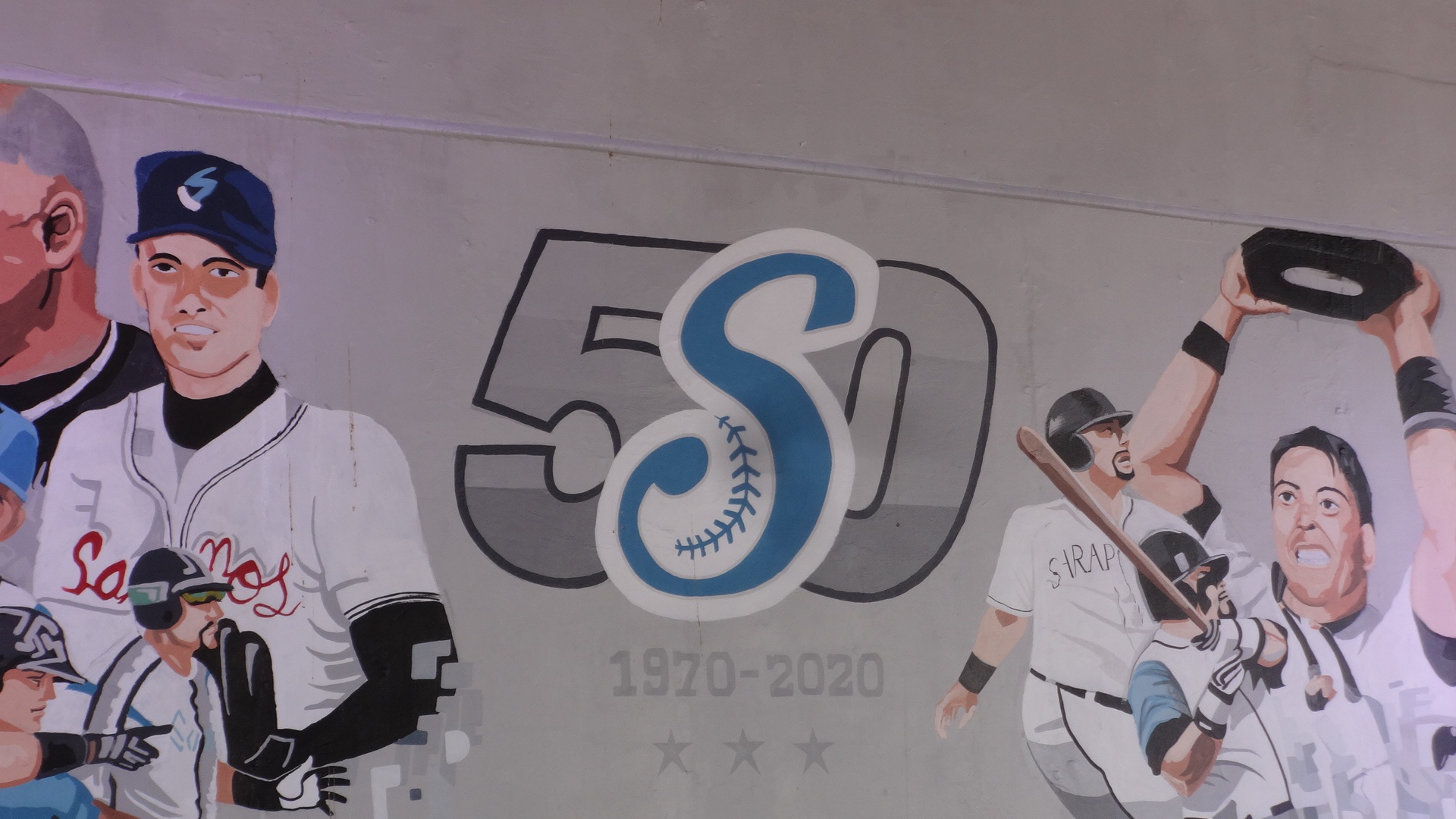 La mañana de este jueves –bajo el puente vehicular de Periférico Luis Echeverría y Bulevar Felipe J. Mery– se inauguró el mural conmemorativo por el 50 aniversario de los Saraperos de Saltillo, realizado por alumnos de la Escuela de Artes Plásticas «Profesor Rubén Herrera» de la Universidad Autónoma de Coahuila (UA de C) en sinergia con el Instituto Municipal de Cultura de Saltillo (IMCS), por lo que el ex manager Orlando Sánchez –con el cual la «Nave Verde» obtuvo su bicampeonato en 2010–agradeció la distinción de que su imagen haya sido incluida en este trabajo visual.