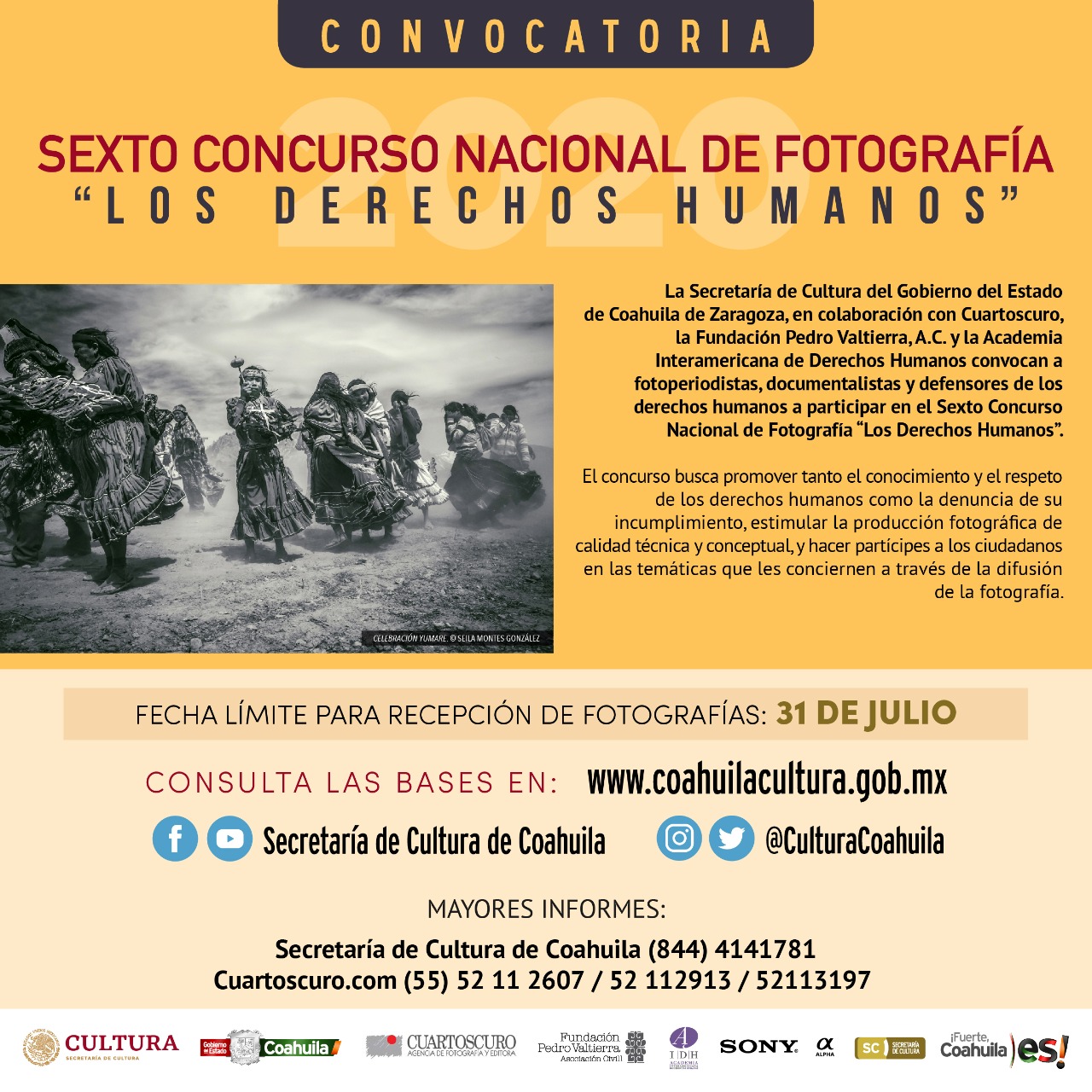 La Secretaría de Cultura del Estado (SC) informó que está cerca el cierre del Sexto Concurso de Fotografía de “Los Derechos Humanos”, que es organizado en coordinación con Cuartoscuro Fundación Pedro Valtierra AC y la Academia Interamericana de Derechos Humanos.