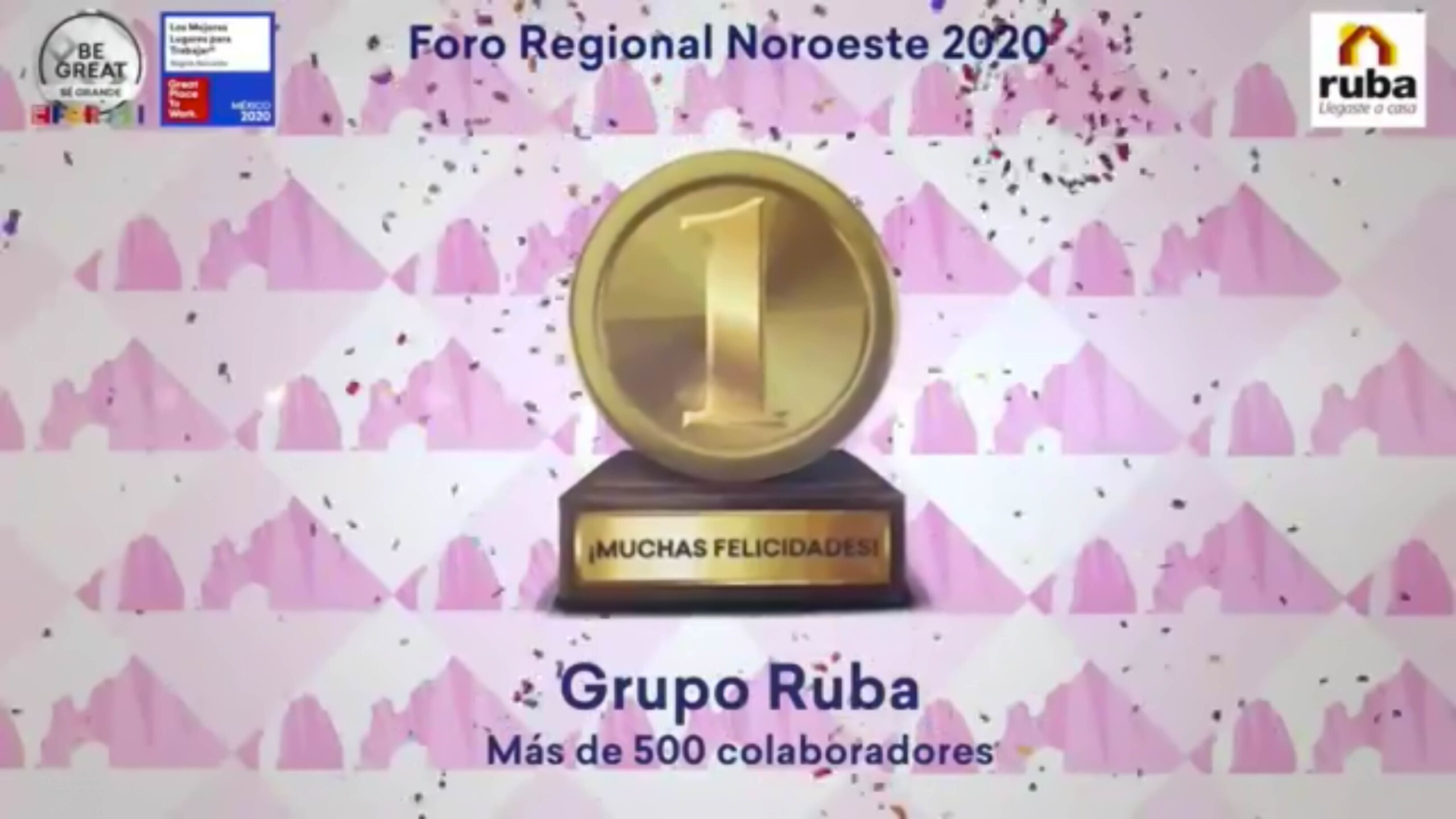 Ciudad de México.- En ceremonia virtual acontecida este jueves 23 de julio, la desarrolladora chihuahuense de vivienda Grupo Ruba obtuvo el primer sitio nacional como ‘El Mejor Lugar para Trabajar-Great Place to Work’ (GPTW) en su modalidad Región Noroeste con empresas de 6 estados del país, con lo que repite su misma posición de 2019.