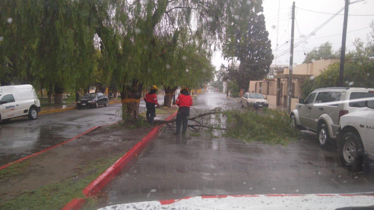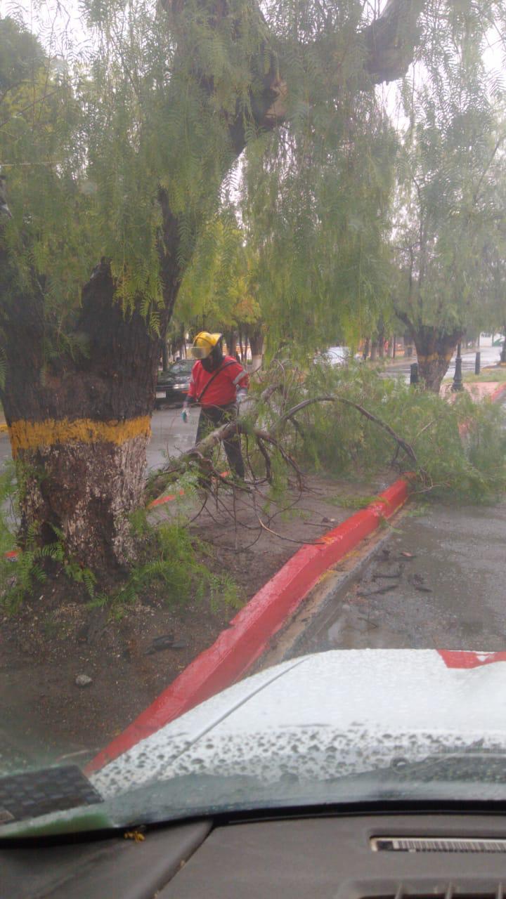 La corporación trabajó en retirar ramas con alerta de caer a vialidades. Se trabajo sobre la calle Nicolás de la Capellanía y Boulevard Manuel Acuña en la zona centro. (EDUARDO SERNA)