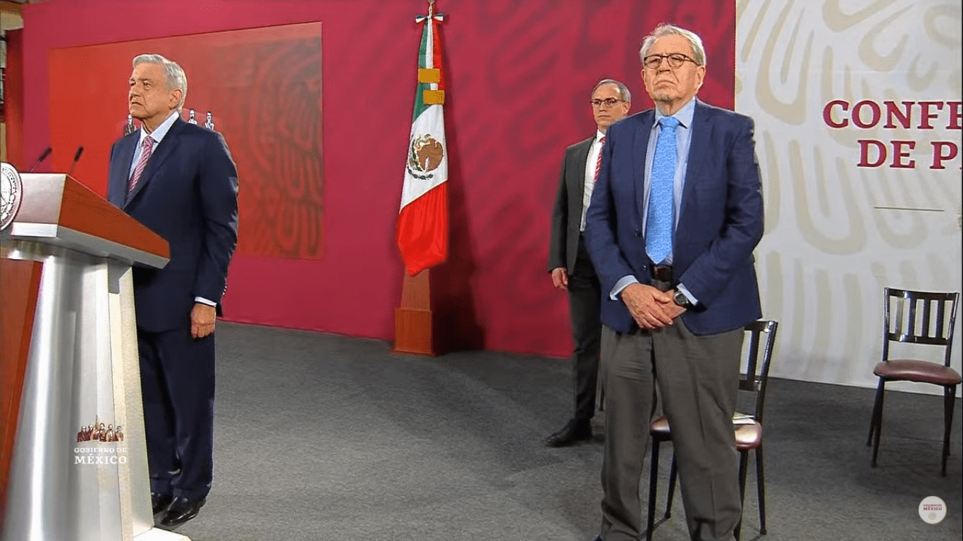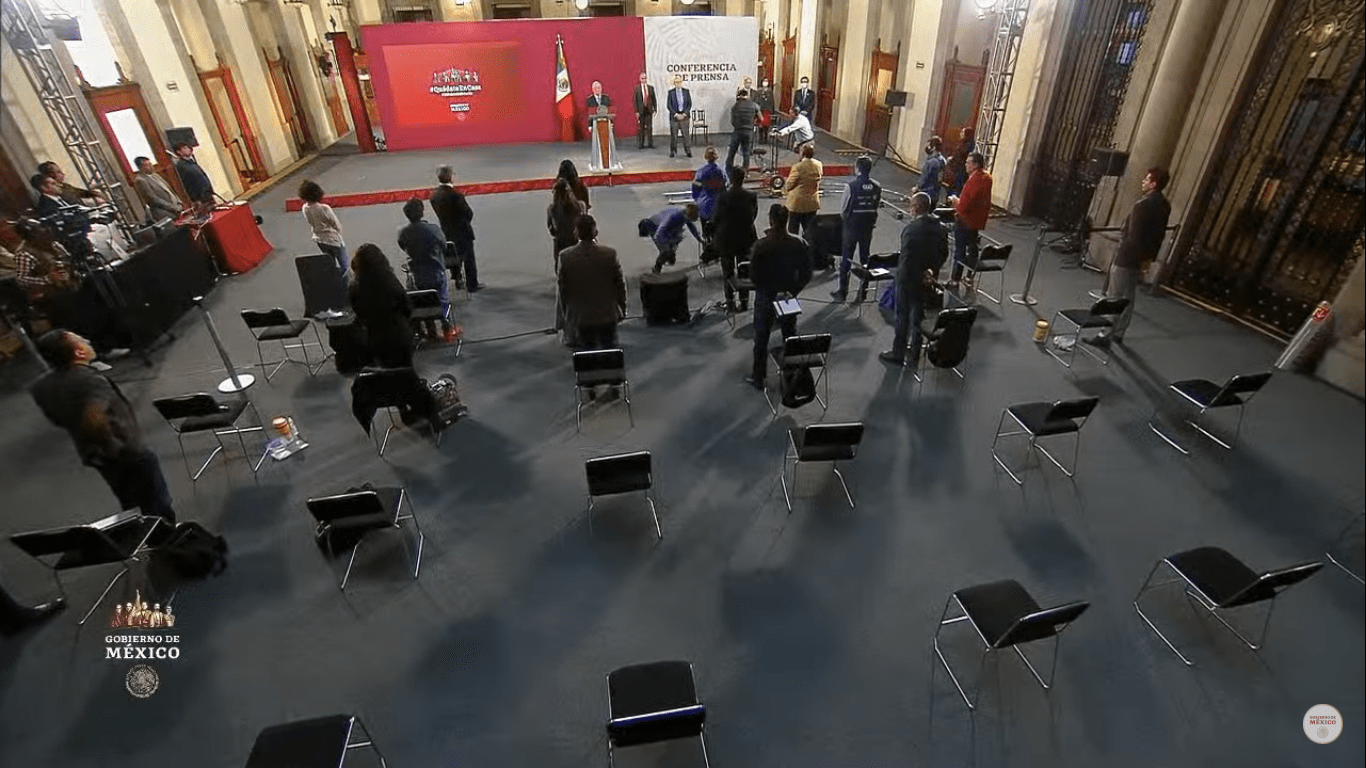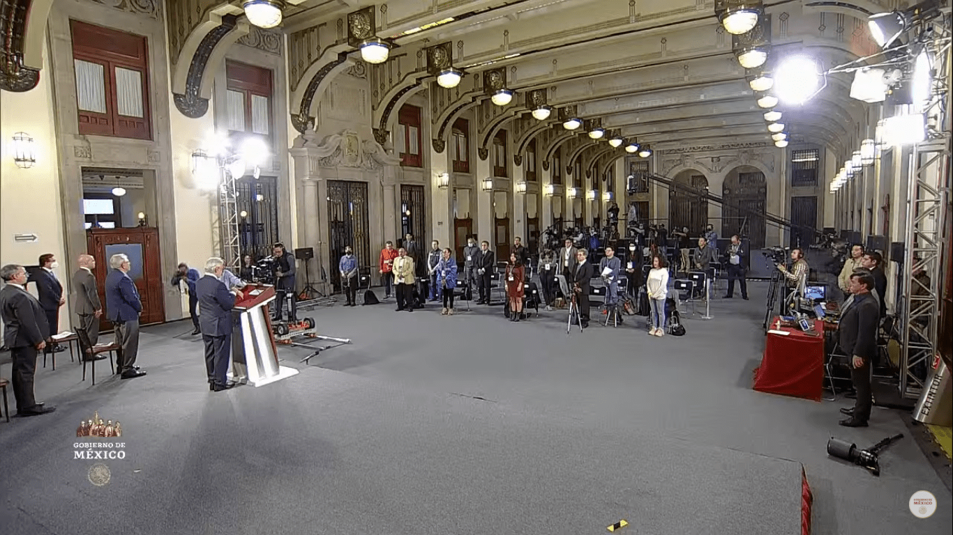 Noticieros Televisa publicó que un reportero hizo un exhorto al presidente para que durante la conferencia se guardará silencio por “los caídos del COVID-19”. López Obrador aceptó y pidió a los presentes ponerse de pie.