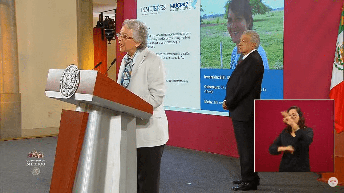 «Desde el Indesol (Instituto Nacional de Desarrollo Social) hemos reforzado los servicios de protección y atención a la salud y una atención jurídica a las mujeres. También el Indesol ha ejercido, para quienes dicen que no hemos ejercido presupuesto suficiente, 554 millones de pesos en programas que sabemos que son esenciales e indispensables como los centros de refugios para mujeres y los centros PAIMEF (Programa de Apoyo a las Instancias de Mujeres en las Entidades Federativas)», explicó en Palacio Nacional.