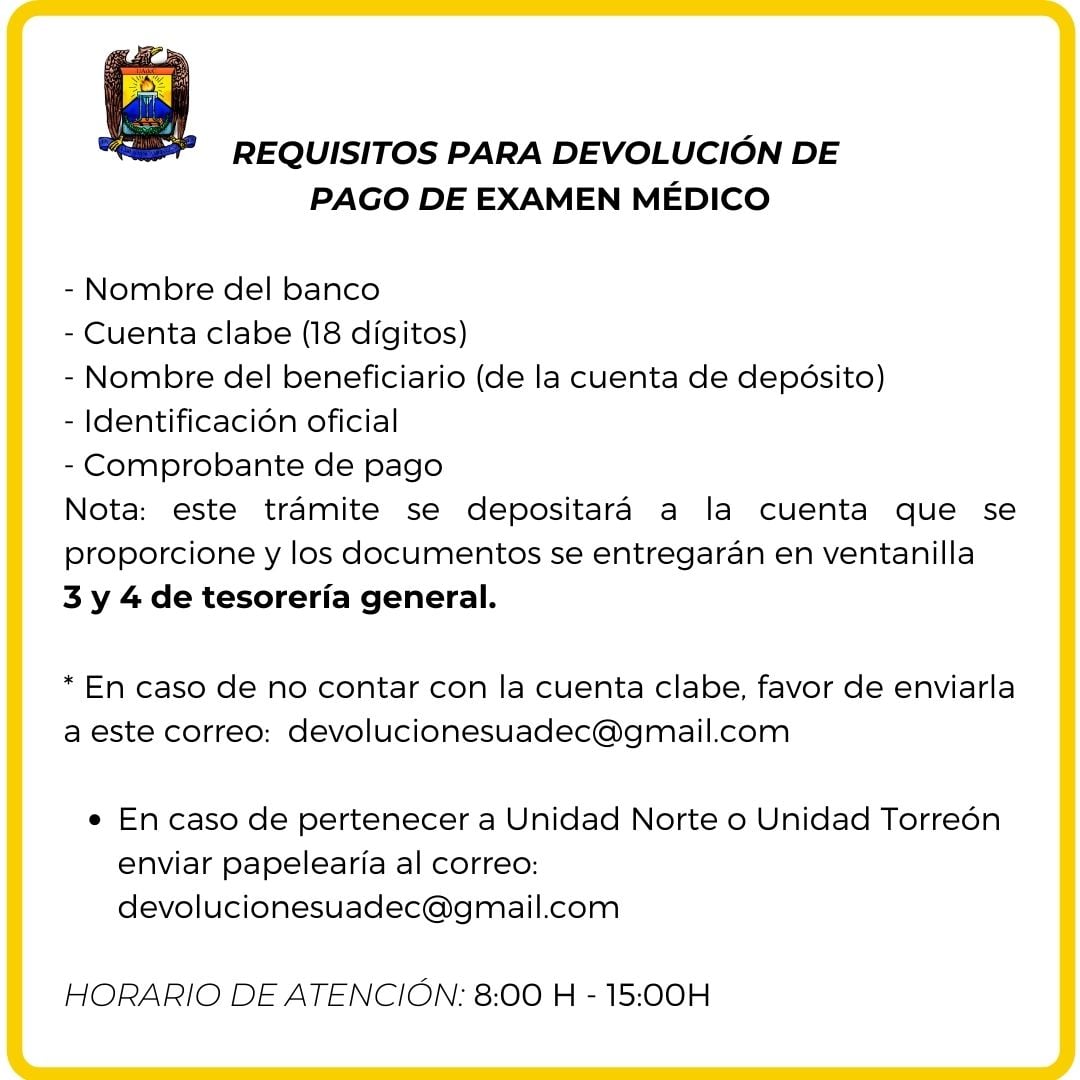 La Universidad Autónoma de Coahuila a través de la Tesorería General informa a los alumnos sobre el proceso a seguir para la devolución del pago del Examen Médico, así como el reembolso a aquellos que ya realizaron el pago de las cuotas anuales de inscripción para el semestre agosto-diciembre de 2020, a las cuales se les hizo una reducción de un 8.3 por ciento y que fue aprobado el lunes 3 de agosto en la Sesión Extraordinaria del Honorable Consejo Universitario.