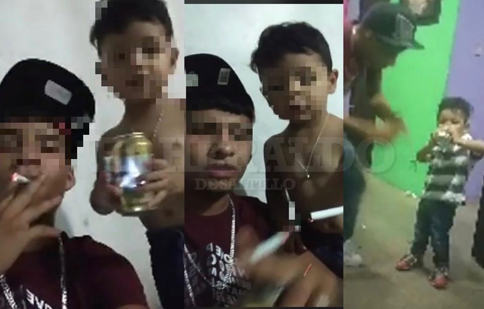 Un joven saltillense transmitió en vivo en su cuenta de Facebook, la madrugada de este domingo, diversos videos en los que aparece un niño de aproximadamente tres años de edad tomando cerveza y fumando cigarrillos.