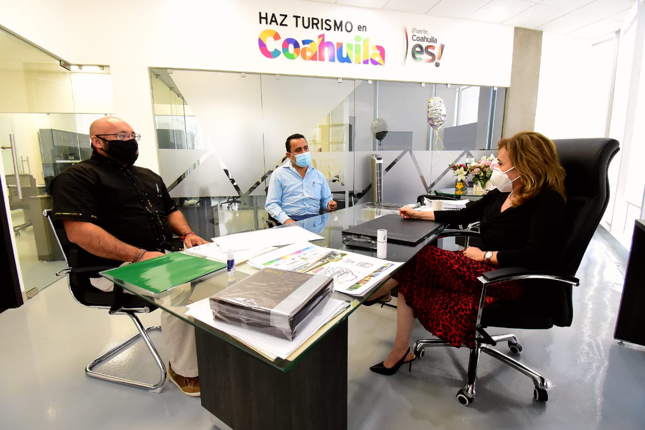 La titular de SECTUR Coahuila también se reunió este lunes con el Alcalde de Candela, Amador Garza, y el Director de Turismo Municipal, Jorge Luis Buentello, para revisar el Maratón MTB “Ventana al cielo 20XX”, que se realizará el domingo 27 de septiembre.