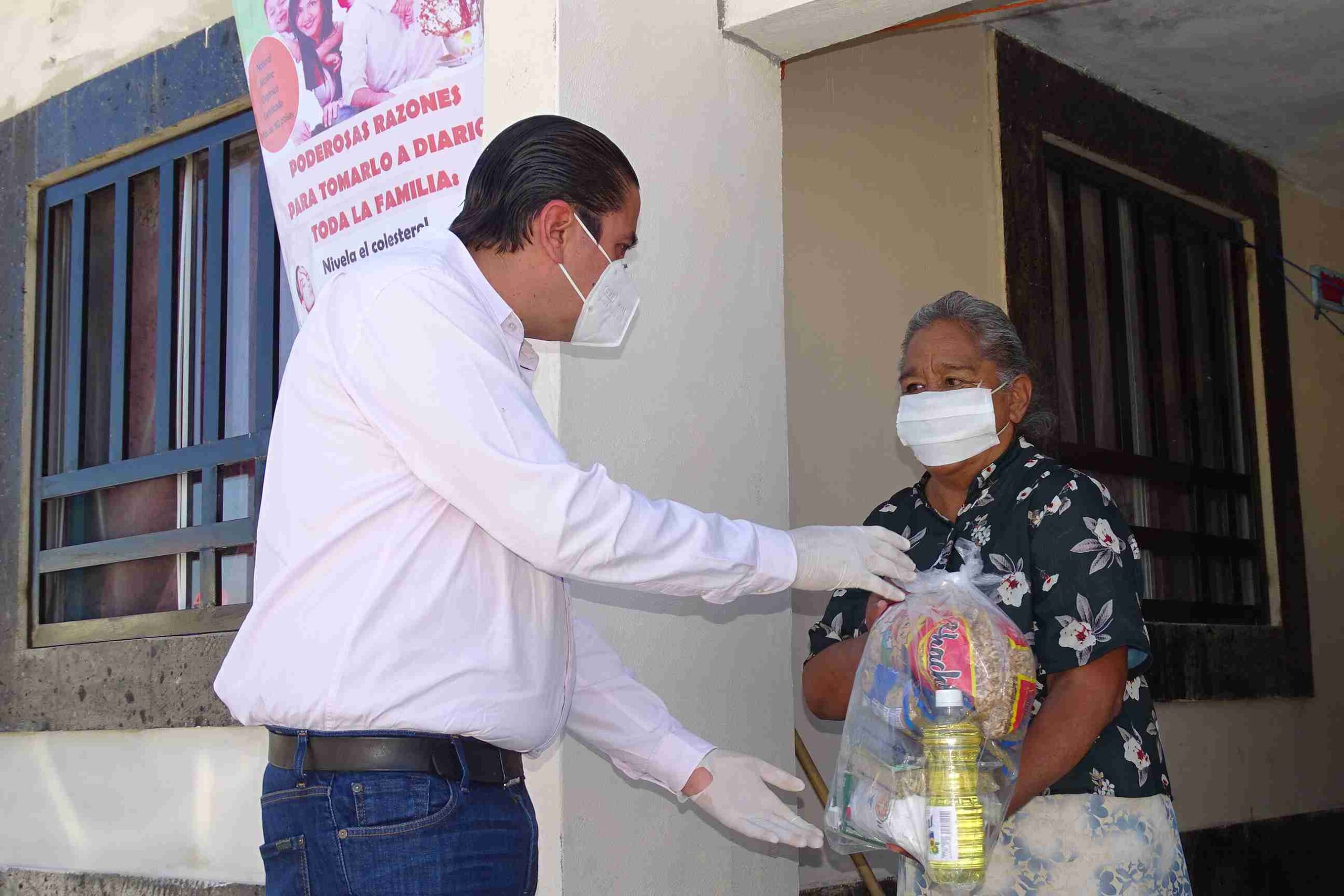 Llega Chema Morales a colonia Villa Sol con apoyo alimenticio