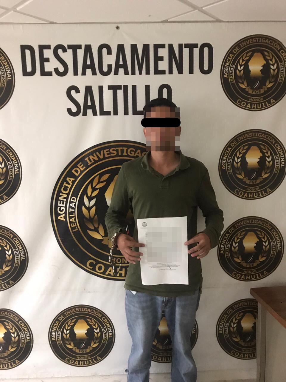Elementos de la Agencia de Investigación Criminal cumplimentaron orden de aprehensión al detener en Saltillo a Osvaldo Alejandro por los delitos de violencia familiar, violación conyugal y privación de la libertad.