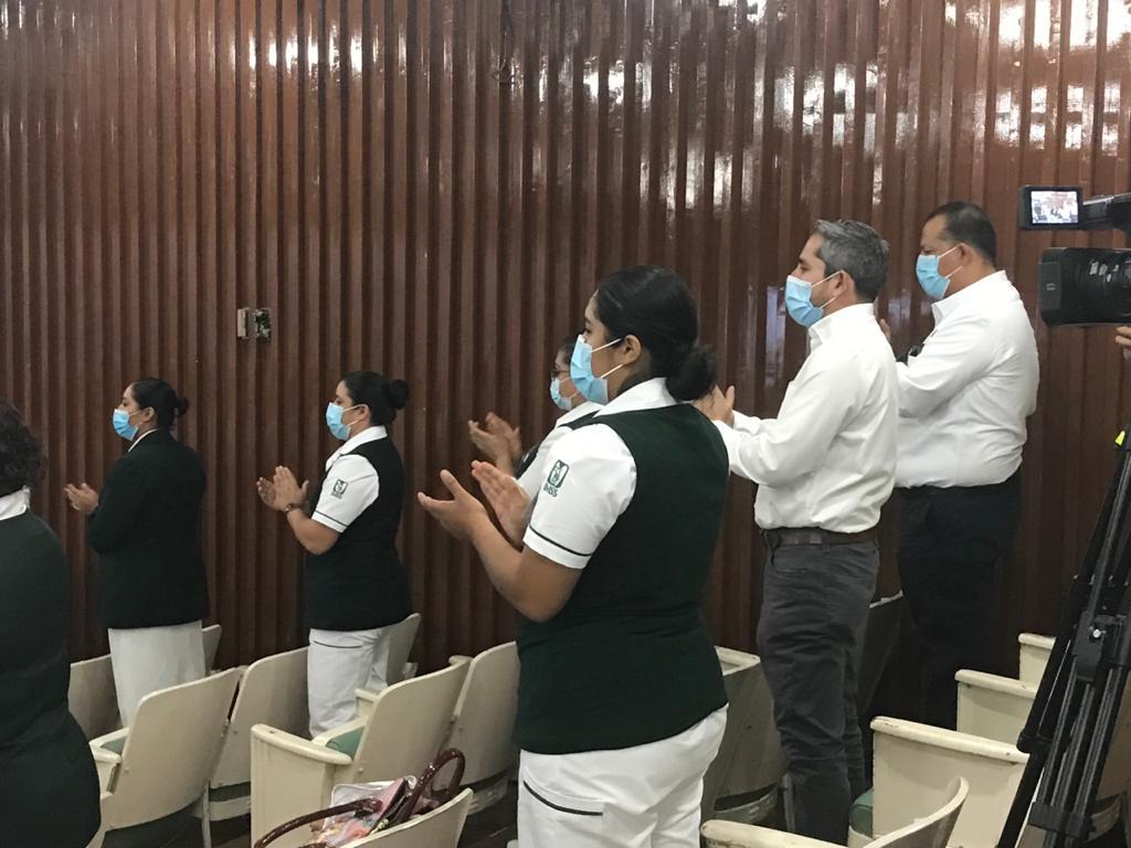 A las 12:00 horas, Zoé Robledo pidió al personal de enfermería guardar un minuto de silencio por los compañeros caídos en el combate a la pandemia de COVID-19. Al término de éste se brindó un minuto de aplauso por los héroes que desde las salas hospitalarias laboran cada día para atender a la población.