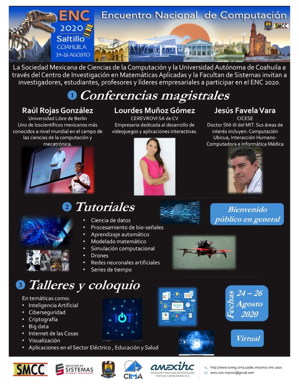 Para inscripciones y más información, visitar la página http://www.turing.cima.uadec.mx/smcc-enc-2020/, o enviar un correo electrónico a smcc.enc.mexico@gmail.com o comunicarse al teléfono del CIMA UAdeC (844) 4 10 12 42. (EL HERALDO)