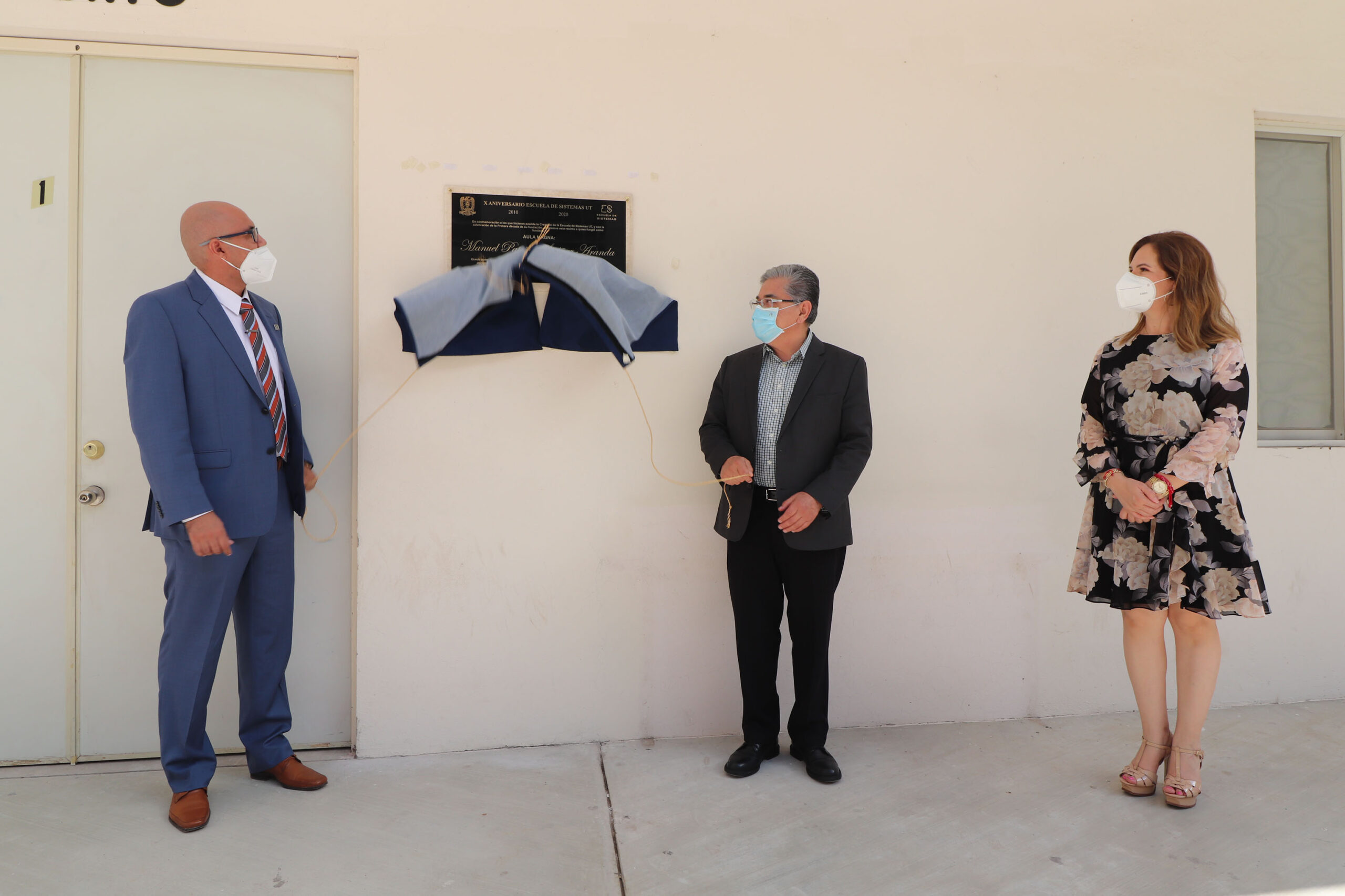 TORREÓN, Coah.- Al develar la placa por el X aniversario de la fundación de la Escuela de Sistemas de la Universidad Autónoma de Coahuila Unidad Torreón, el rector de la institución, Salvador Hernández Vélez, afirmó que la UAdeC sabe dar respuestas a la sociedad y este plantel es resultado de esas decisiones en materia educativa.