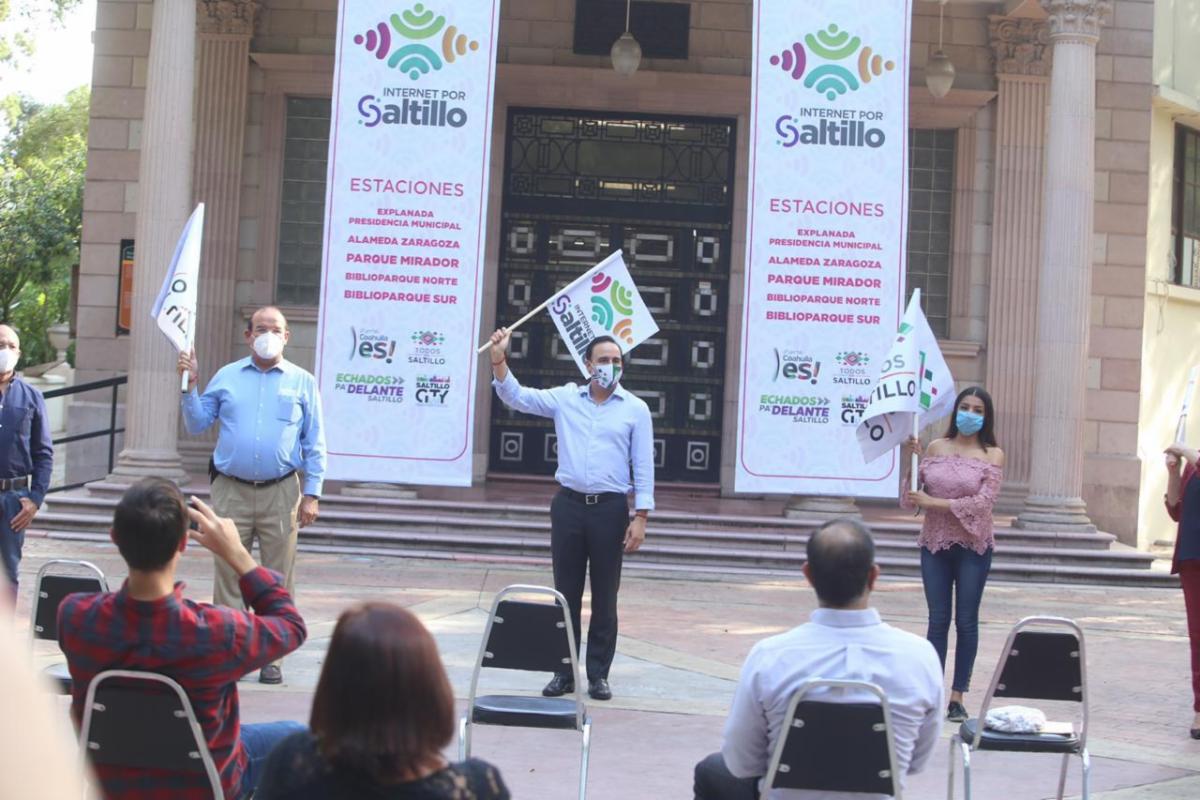 El alcalde Manolo Jiménez Salinas arrancó al programa Internet Por Saltillo, con el que se dotará de internet gratuito a la ciudadanía en diferentes puntos de la ciudad, otro compromiso de campaña cumplido que forma parte del eje Saltillo Inteligente.