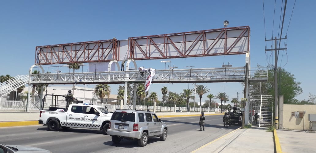 Monclova.- Elementos armados de la Guardia Nacional fueron desplegados para retirar mantas en que se cuestionaba al Presidente de México sobre la falta de solución a los problemas del acero y el carbón en Coahuila.
