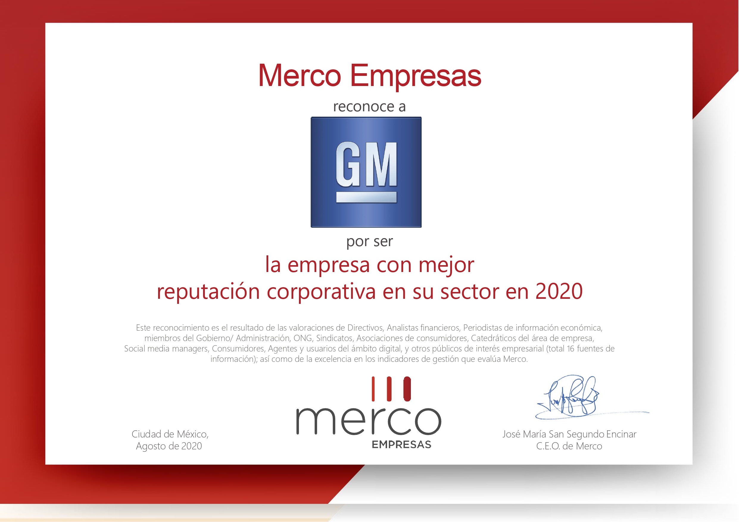 Ciudad de México.- General Motors de México fue reconocida por 5to año consecutivo como la empresa automotriz mejor evaluada en el ranking “Las 100 Empresas con mejor reputación en México” de Merco (Monitor Empresarial de Reputación Corporativa).