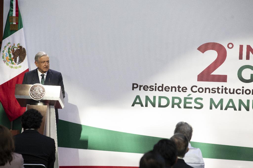 El presidente de la República leyó un mensaje de 45 minutos de su informe presidencial en el que reconoció pérdida de un millón de empleos, alza en violencia y secuestros y agradeció a empresarios el apoyo en salud con la pandemia y educación.  El informe completo sería entregado a la Cámara de Diputados por la Secretaría de Gobernación la tarde de este martes. (CRISELDA FARÍAS | INFONOR)