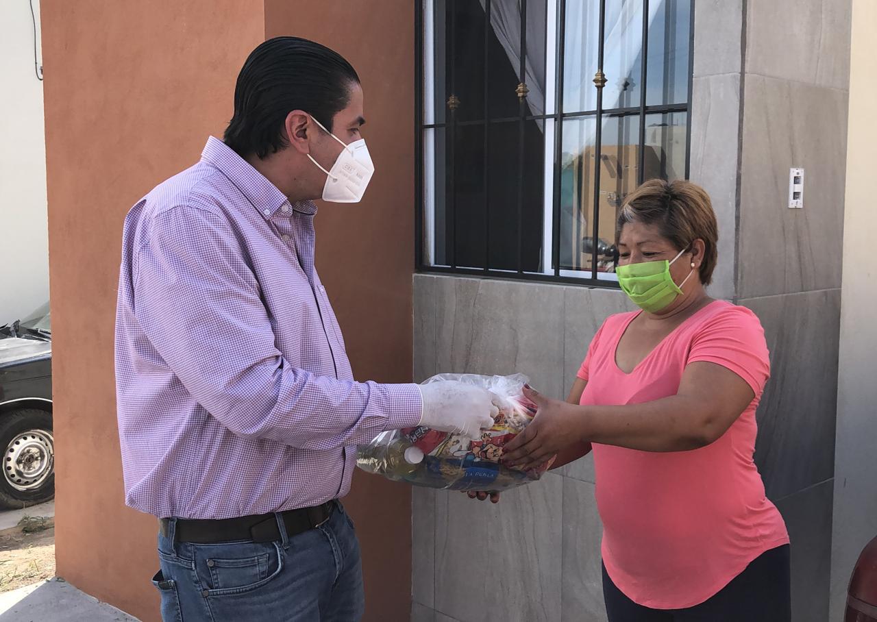 Continuando con la atención a la población que se ha visto afectada por la pandemia del COVID-19, este miércoles el alcalde de Ramos Arizpe, Chema Morales Padilla, visitó la colonia Valle de los Pinos para entregar casa por casa 700 paquetes alimentarios.