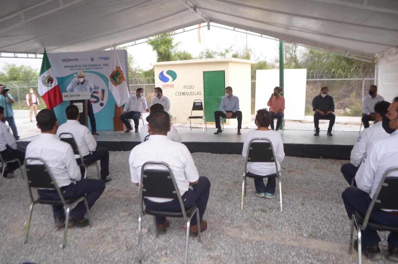 Eduardo Campos Villarreal, Gerente General de Simas Monclova-Frontera, destacó que el pozo se perforó a una profundidad de 500 metros, y que se introdujeron 839 metros lineales de tubería PVC Hidráulica con un diámetro de 10 pulgadas, para suministrarla al tanque elevado y el equipamiento del pozo “Cieneguillas”, con una bomba que extrae 80 litros por segundo.