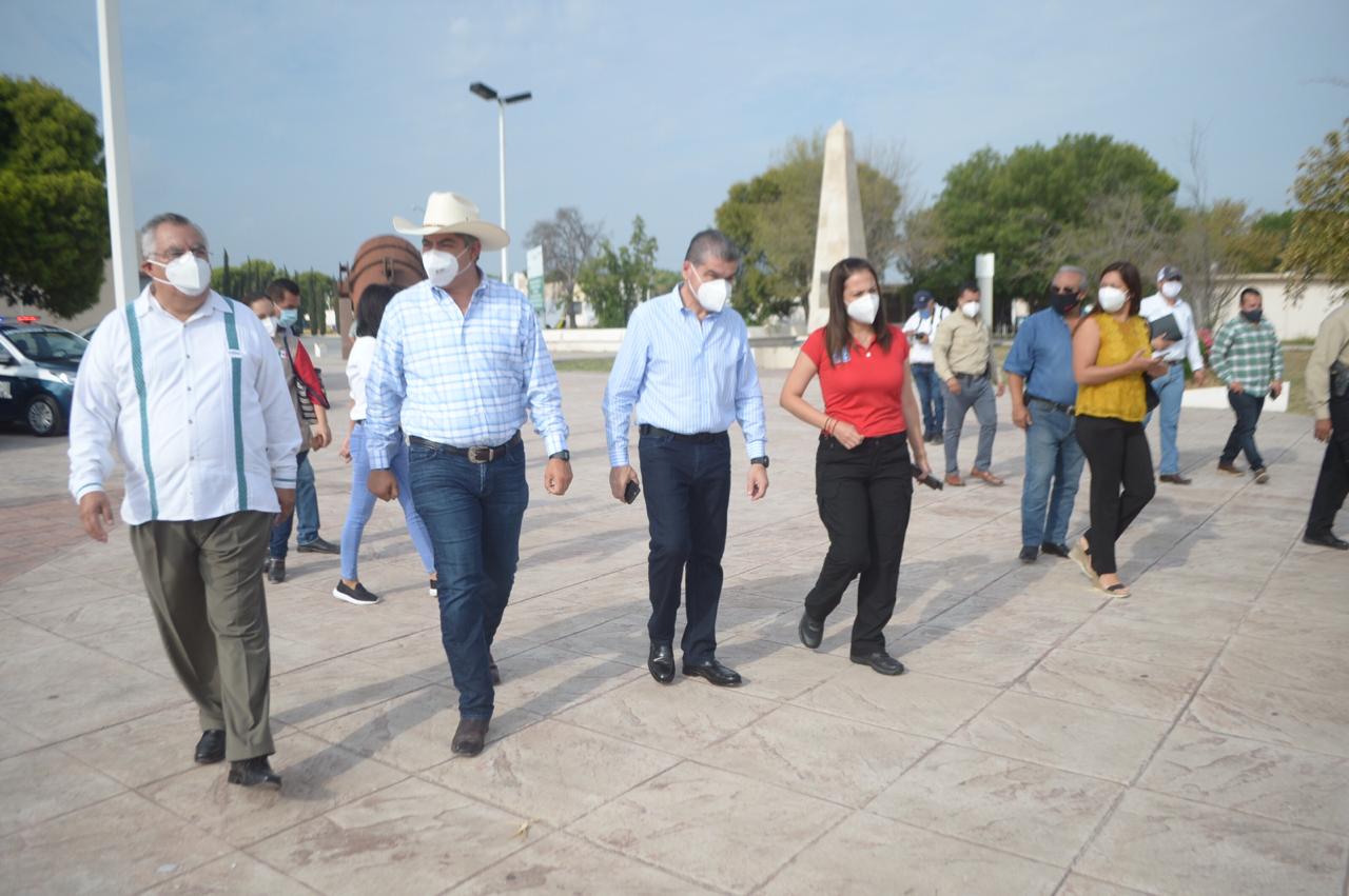 Riquelme Solís estuvo acompañado por Sonia Villarreal Pérez, Secretaria de Seguridad Pública del Estado, y por el alcalde de Monclova, Jesús Alfredo Paredes López. El evento fue celebrado en la explanada de la Unidad de Seminarios de la Universidad Autónoma de Coahuila.